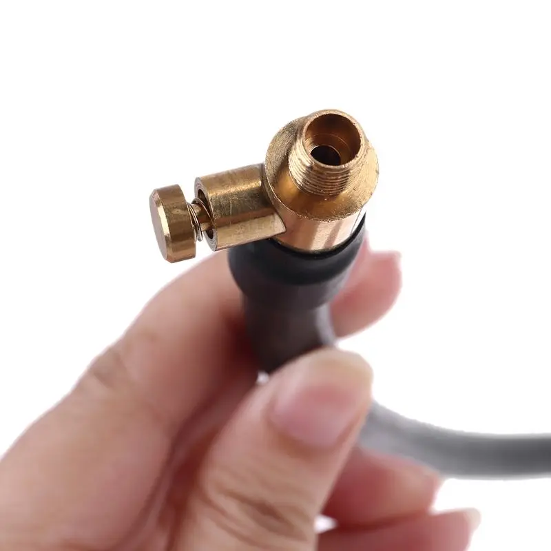 Прикрепленный латунный воздушный клапан-зажим, который может быть соединен с шинами-клапаном. Воздушный шланг изготовлен из резины, прочный и не легко поврежден.
