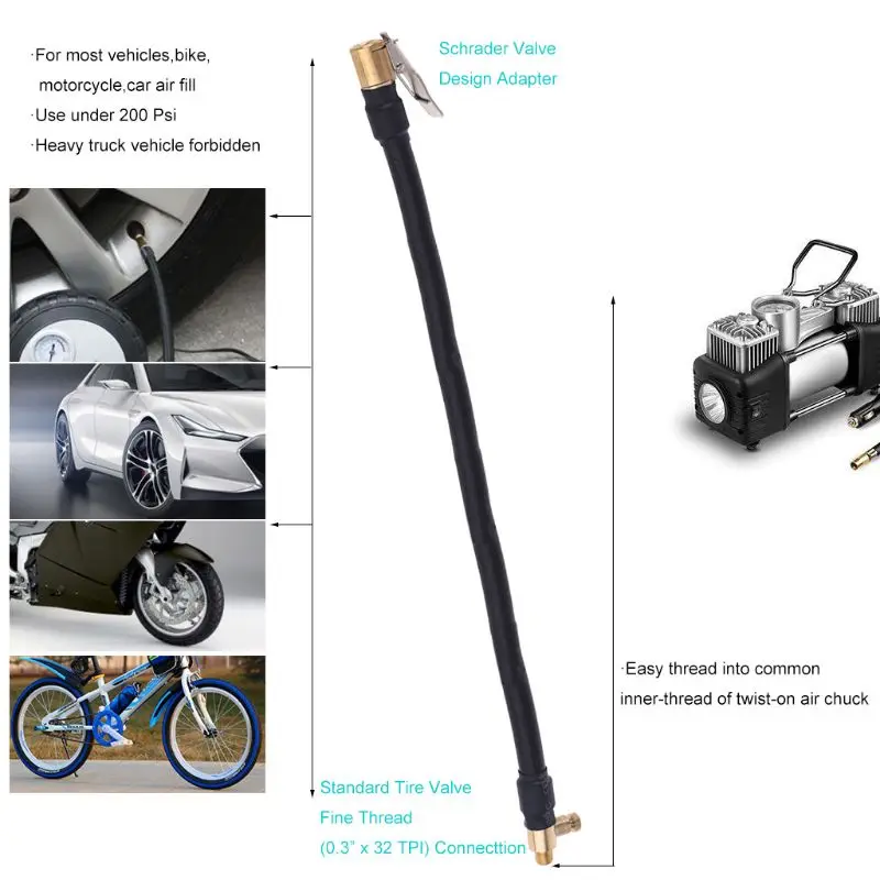 Автомобильный воздушный резиновый шланг для накачивания шин, накачиваемая трубка, подходит для насоса воздушного компрессора со стандартной тонкой резьбой 0,305 дюйма x32TPI