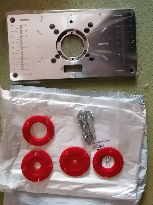 Доставка быстрая, описанию соответствует, но для моего фрезера пластина маловат, буду подгонять крепление. Пластина изготовлена хорошо, кольца пластмассовые, качество литья невысокое. Если не хотите возиться, учитывайте размер своего фрезера.