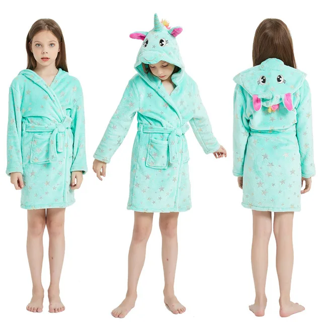 Зимние халаты с единорогом, Детские пижамные халаты для девочек, Ха...
