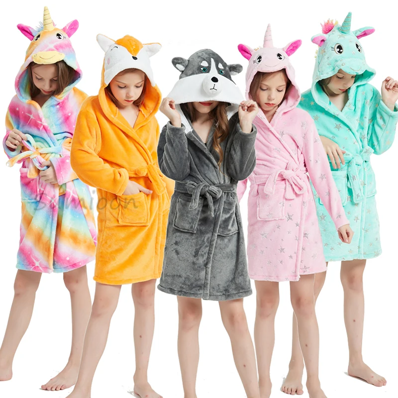 Халат-Кигуруми для девочек, пижама, детский халат с единорогом, полотенце с капюшоном и мультяшным рисунком, халат, халат с животными, детская одежда для сна
