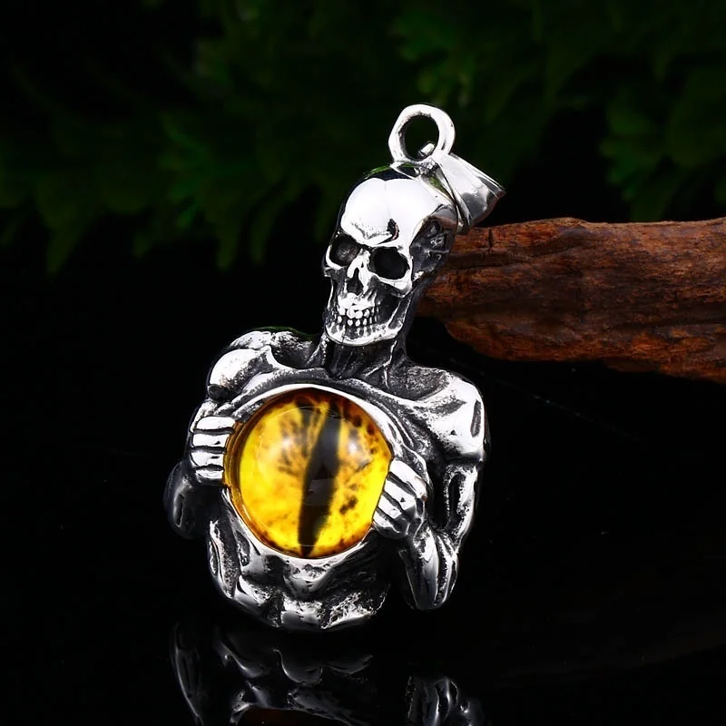 RetroSkull форма головы кошачий глаз камень инкрустированный кулон ожерелье мужское ожерелье Met...