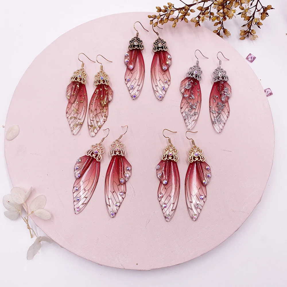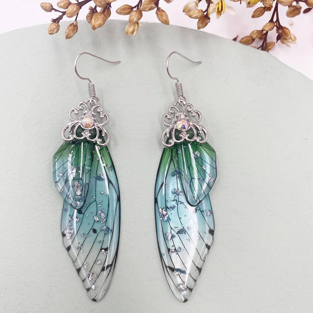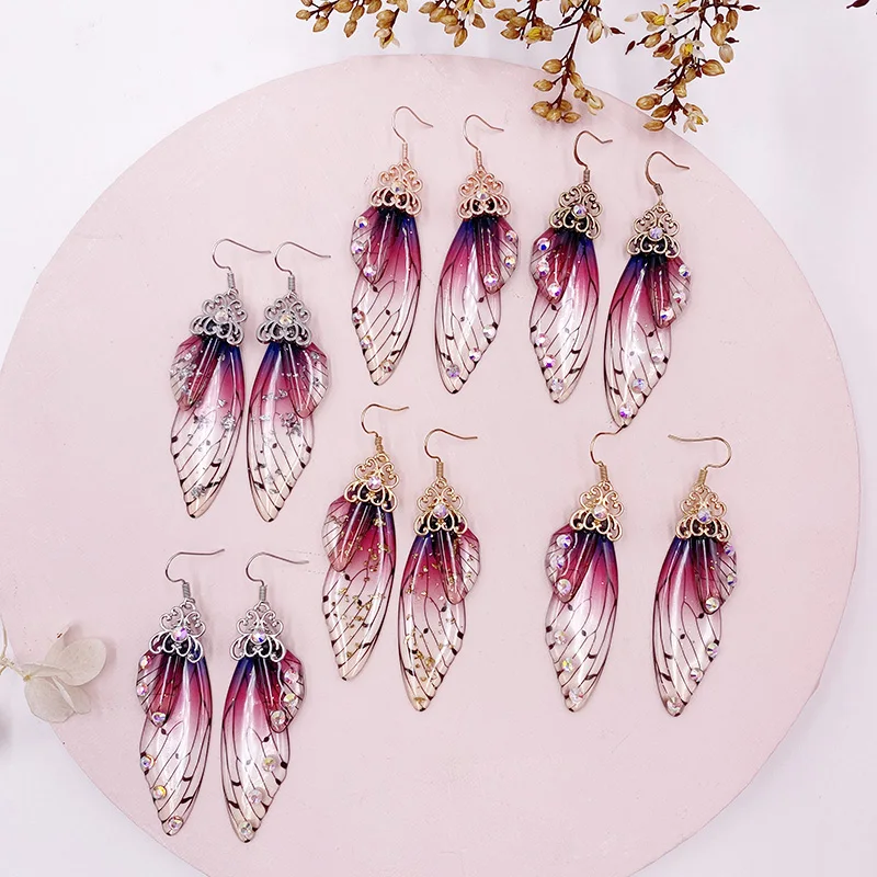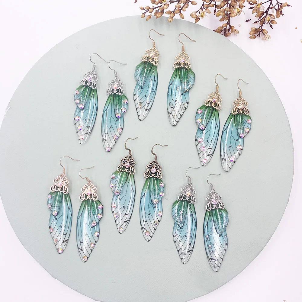 Серьги-подвески в виде крыльев бабочки ручной работы, висячие серьги из смолы с насекомыми, стразы из фольги, Свадебная и вечерняя мода, Ювелирное Украшение в подарок