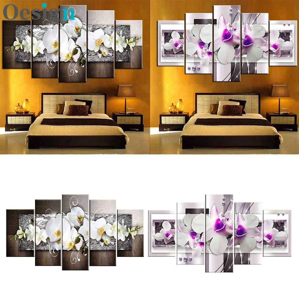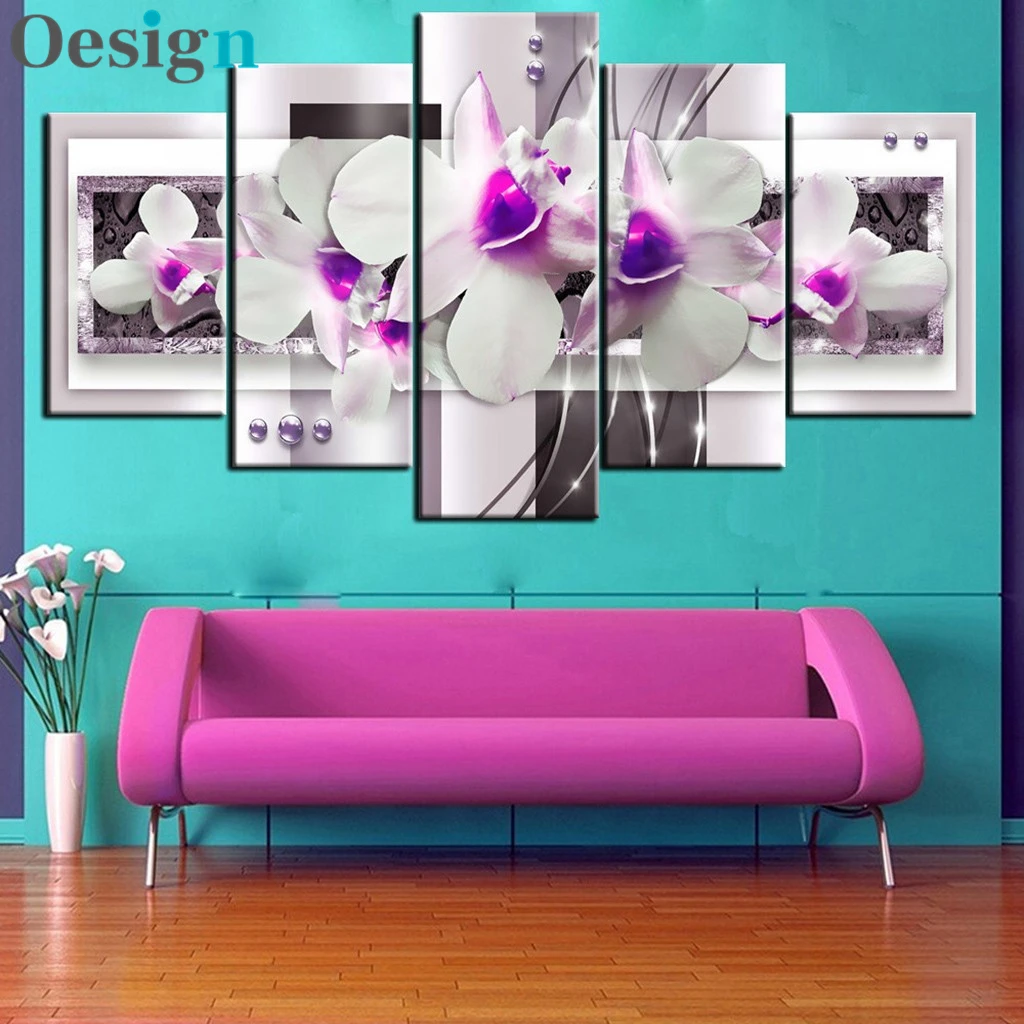5 панелей абстрактная Цветочная Картина на холсте и принты современ...