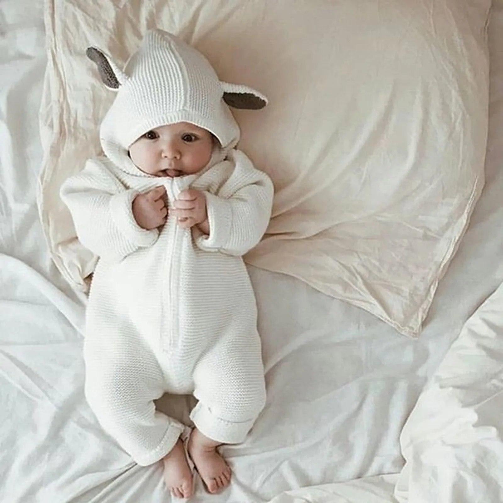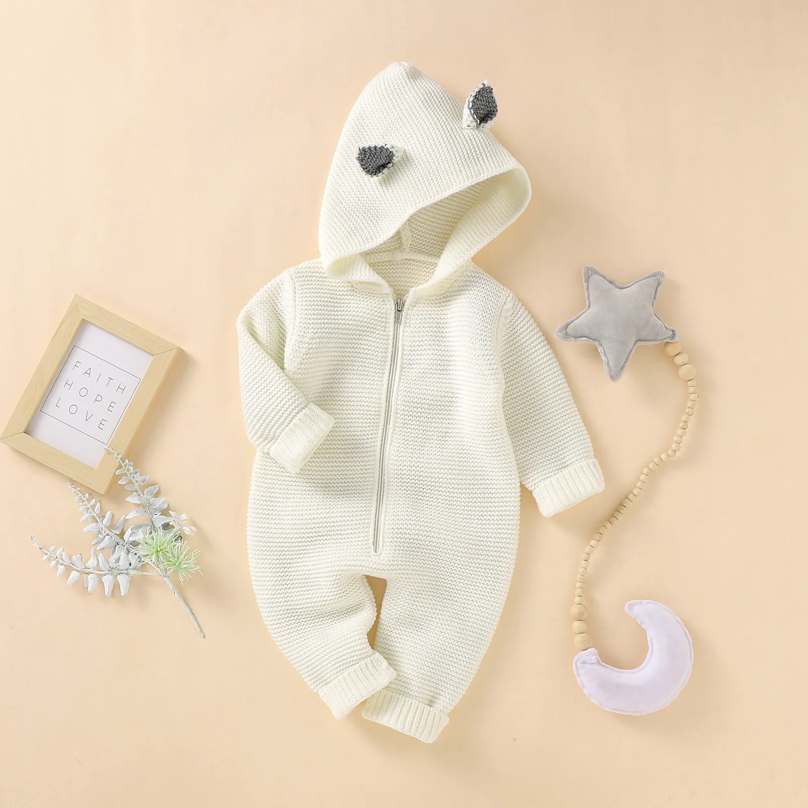 Комбинезон вязаный зимний для новорожденных девочек и мальчиков