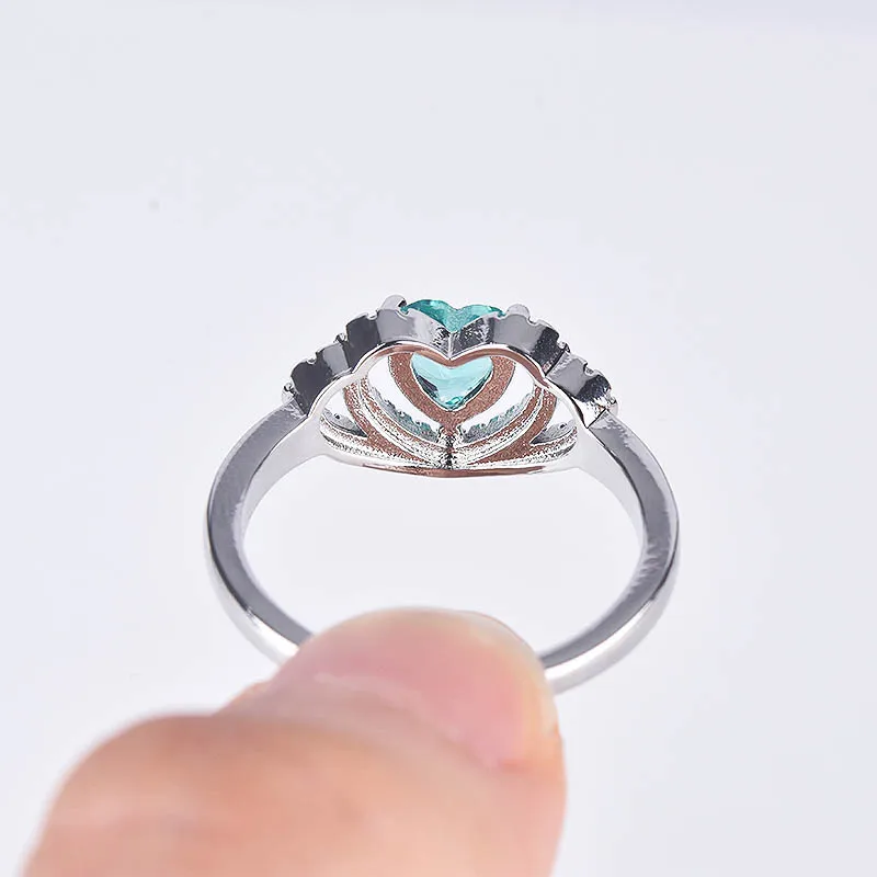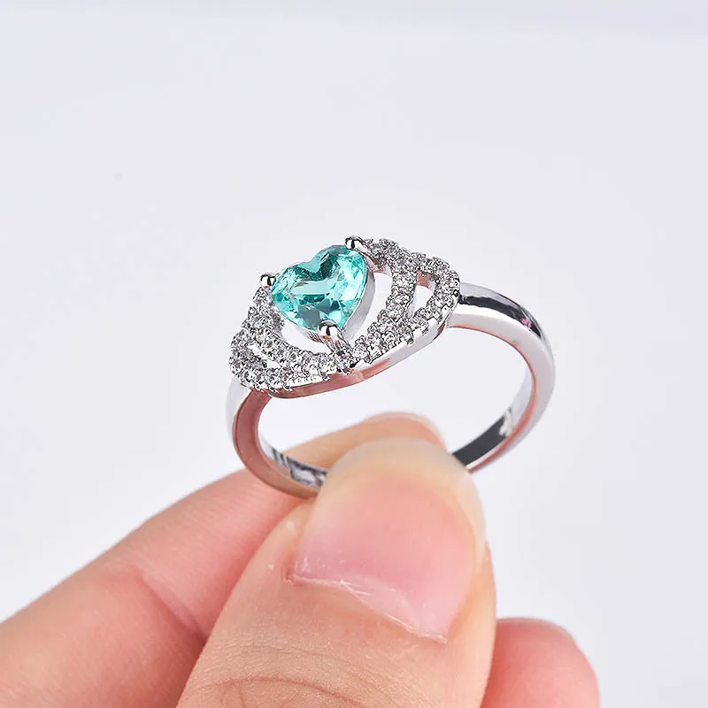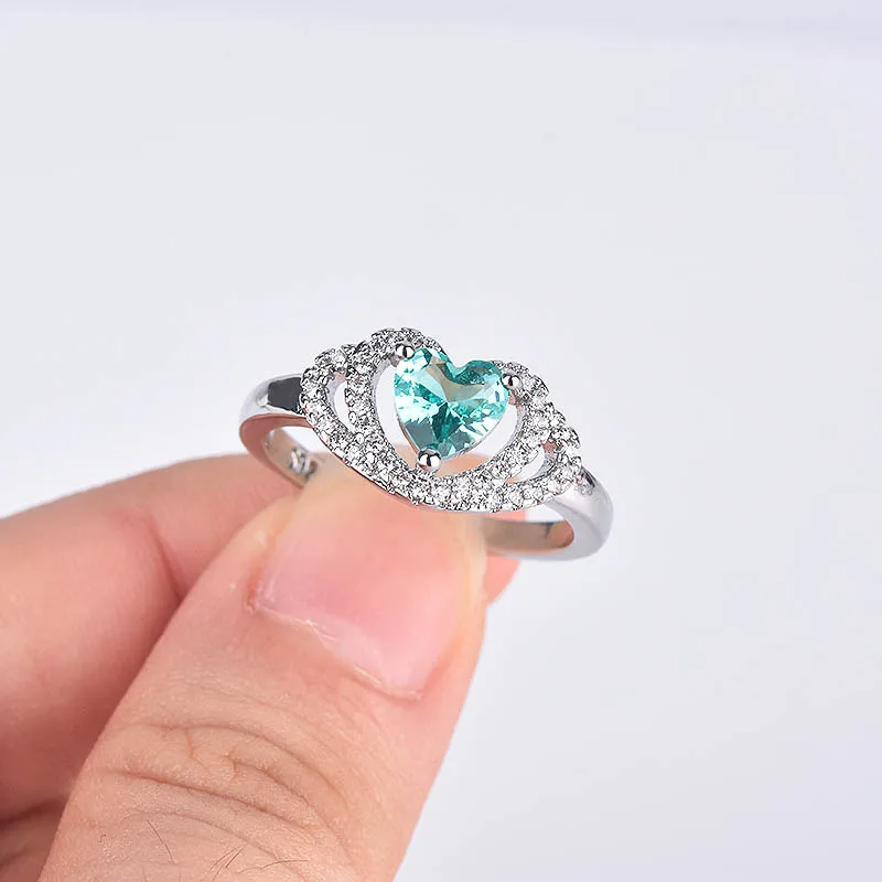 Женское кольцо в форме сердца, с инкрустацией из синего кристалла