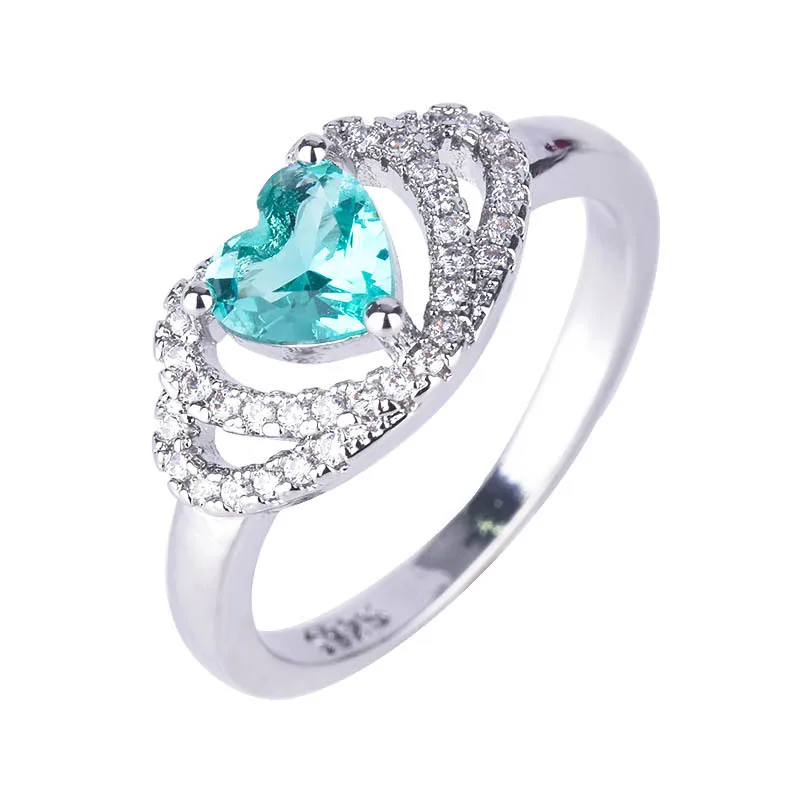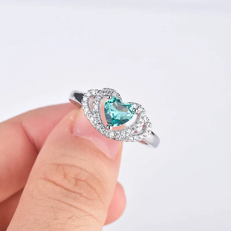 Женское кольцо с цирконом, кольцо в форме сердца с зеленым кристаллом