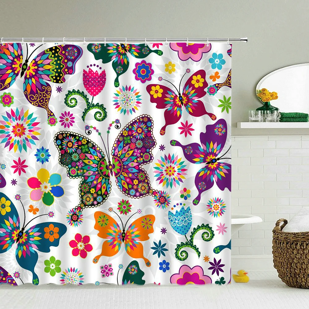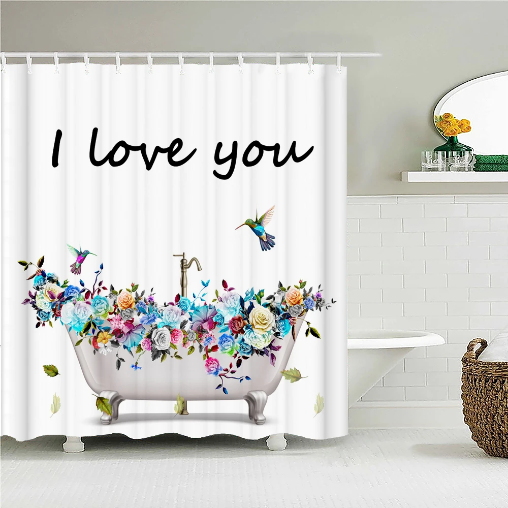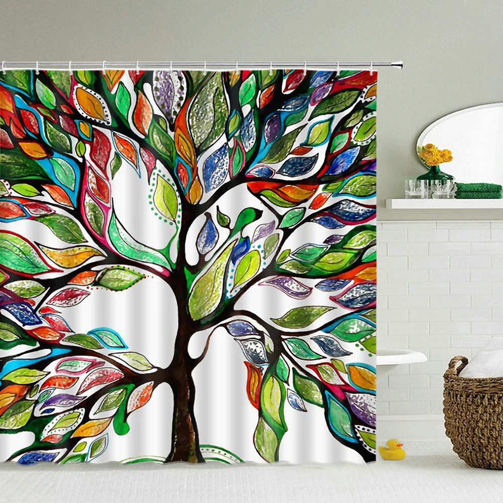 Красочные шторы для душа с цветами, зеленые растения, 3d искусственное украшение с крючками, экран для ванной из полиэстера 180x240