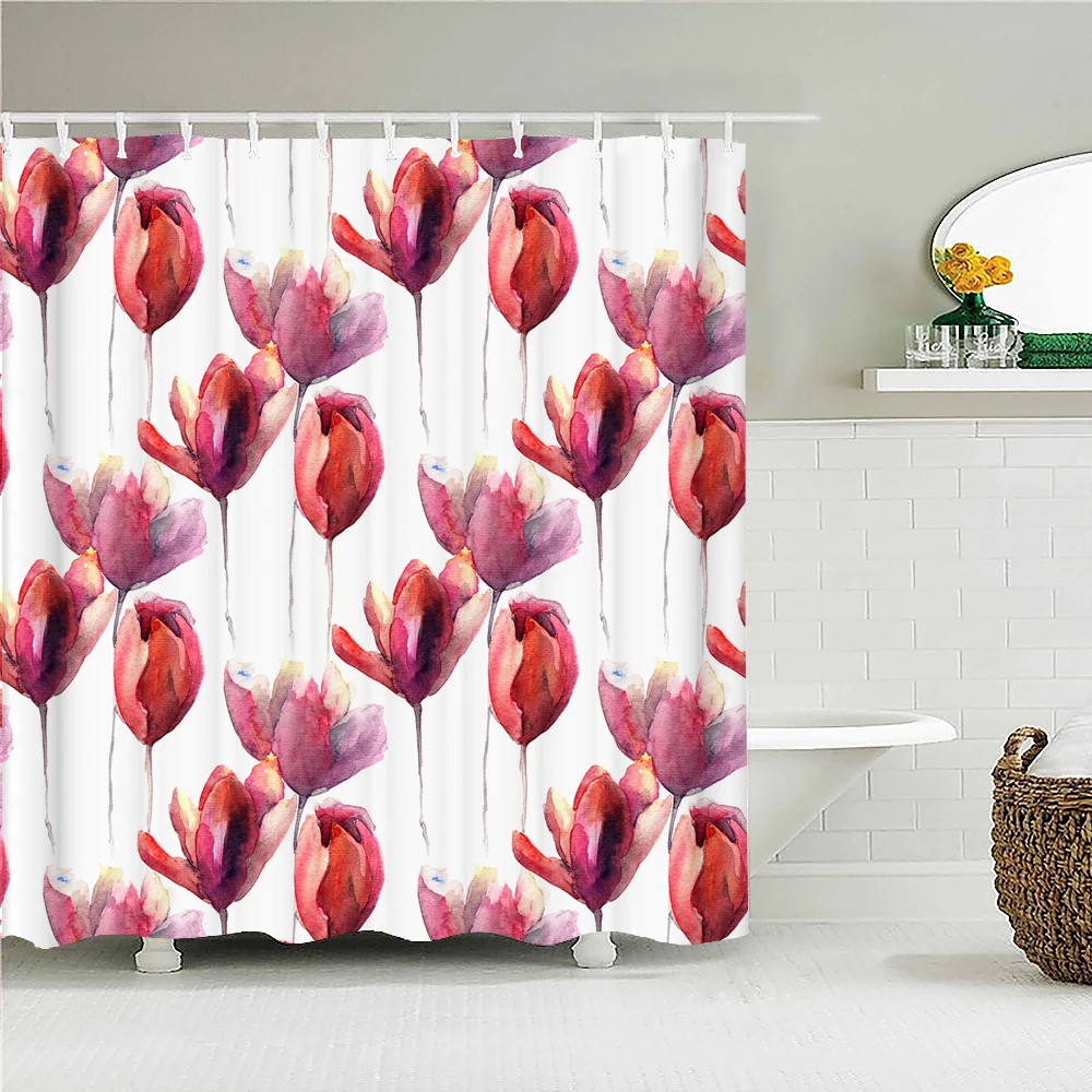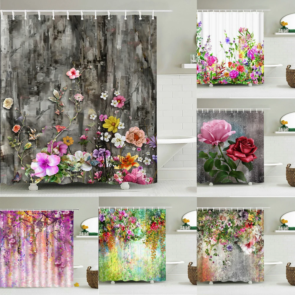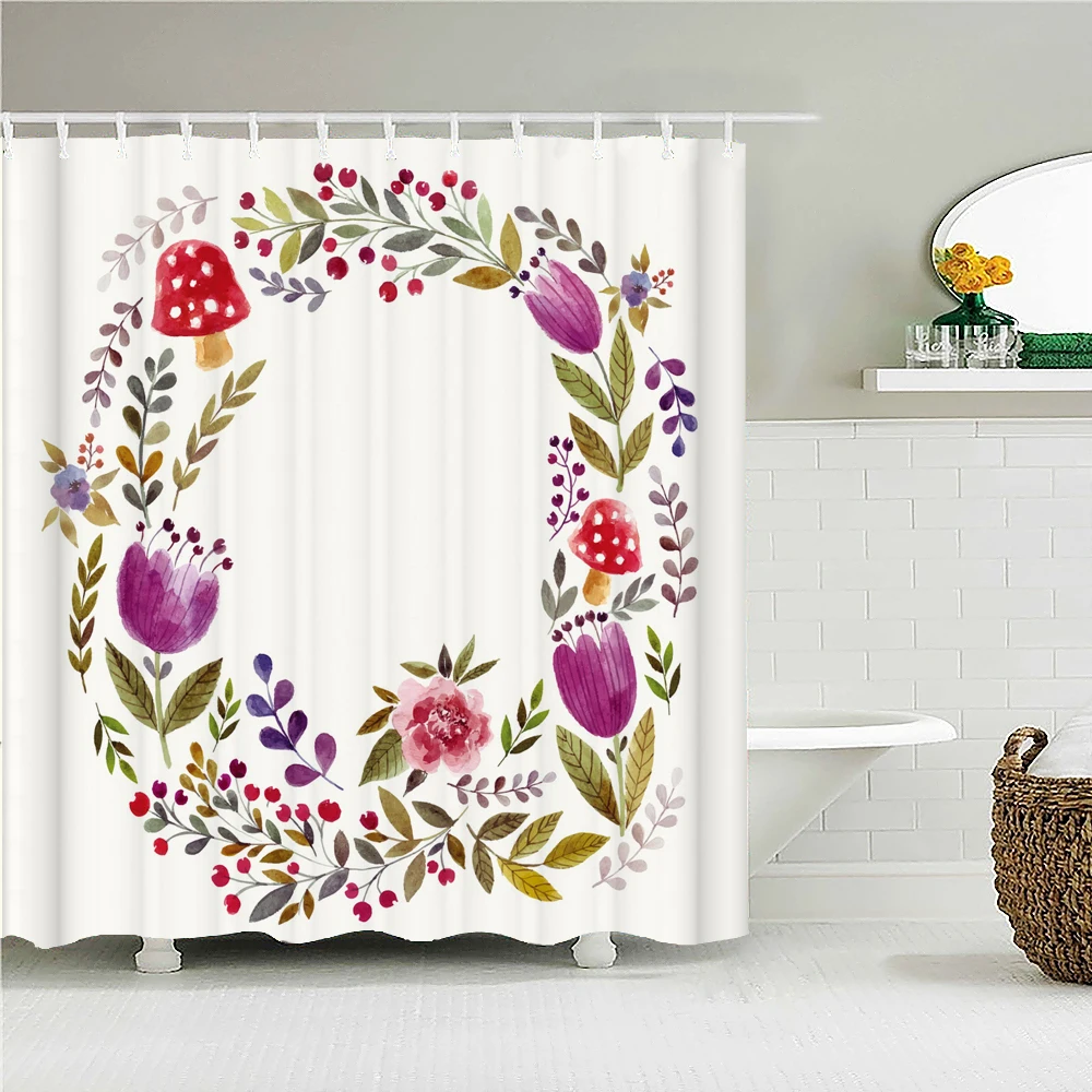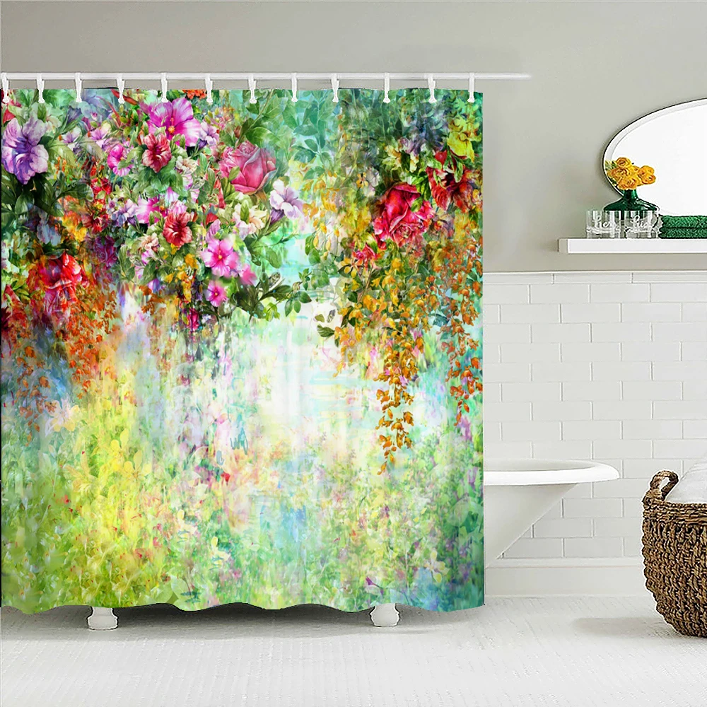 Красочные цветы занавески для душа зеленые растения 3d Водонепроницаемая занавеска для ванной украшение с крючками 180x240 полиэстер для ванной
