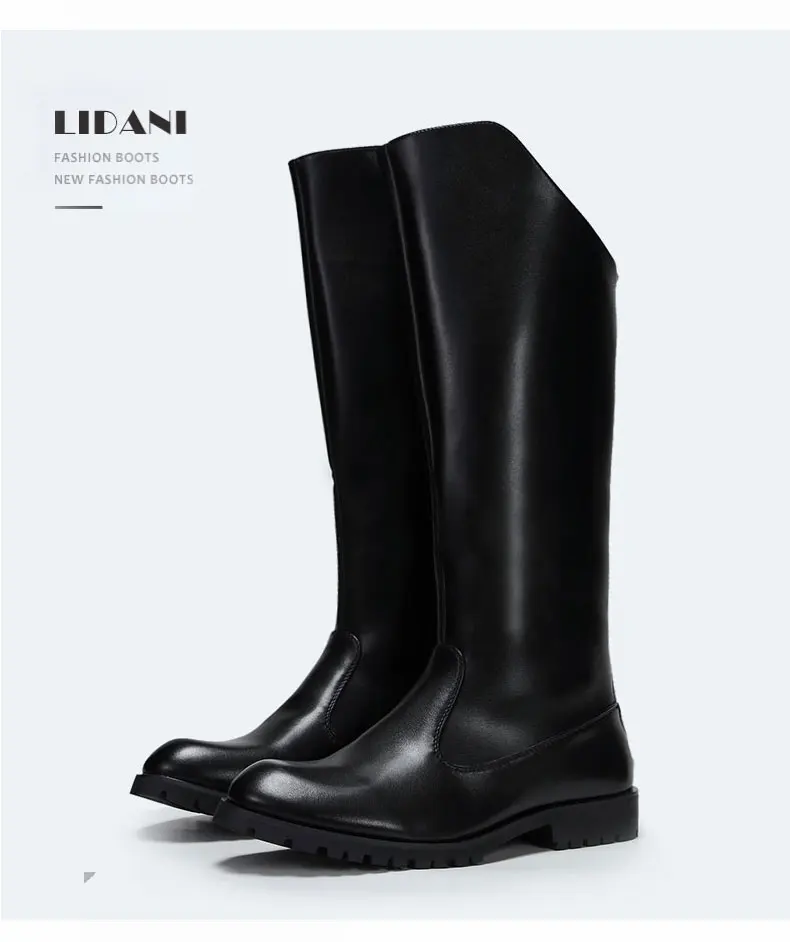 Ботинки мужские в байкерском стиле, теплые зимние ботинки из коровьей кожи, корейский дизайн, высокие сапоги для верховой езды, большие размеры icon star icon star icon star icon star icon star