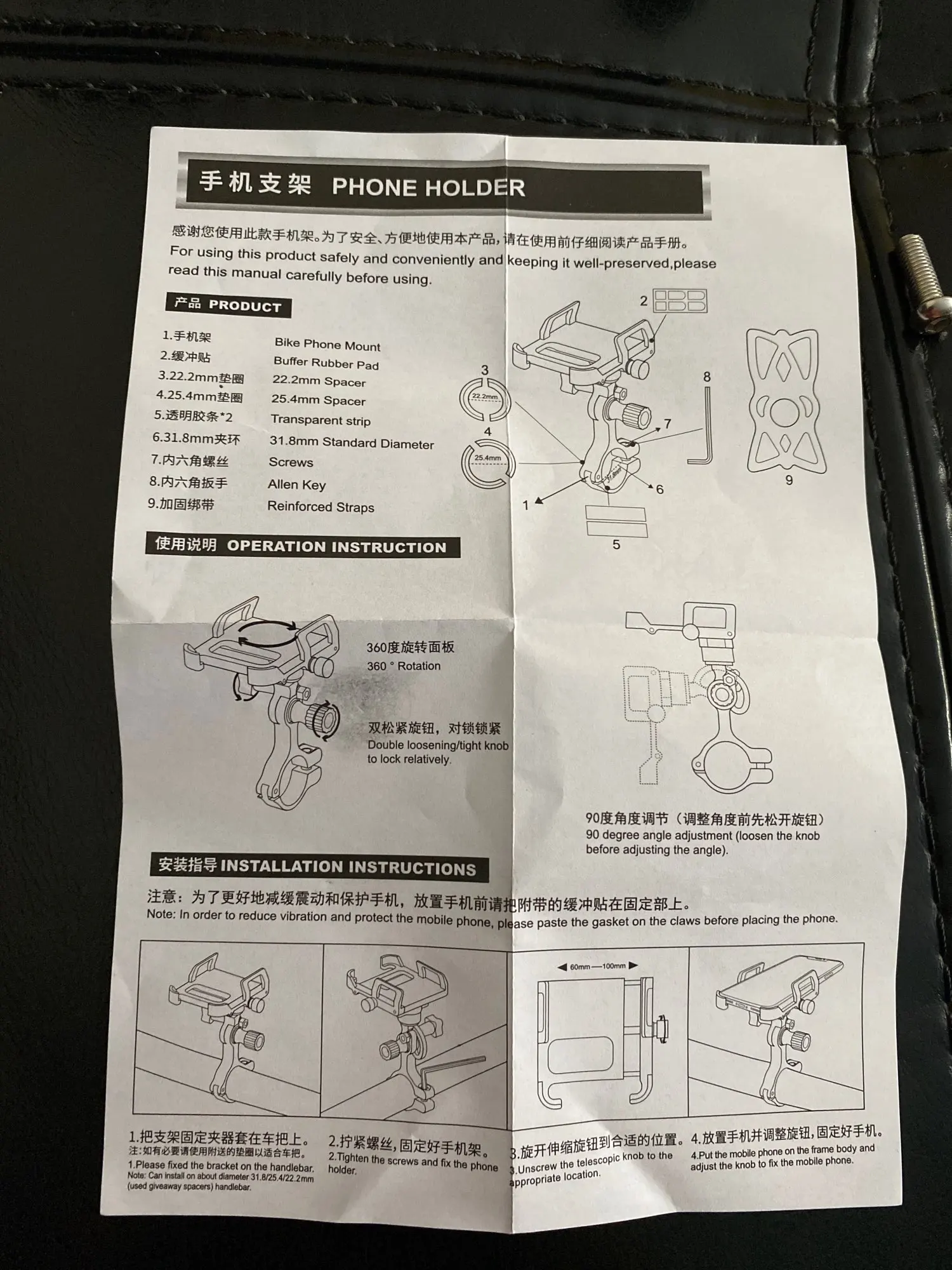 El producto es de buena calidad no es plástico, es metal como fierro pulido y pintado es pescado unos 500 gramos aprox. Las instrucciones pueden mejorar ya que después de estar probando entiendes lo que indica, recomendaría que la página o el vendedor pusiera un video de cómo poner este producto completo en el manillar de la bicicleta con todos los accesorios.