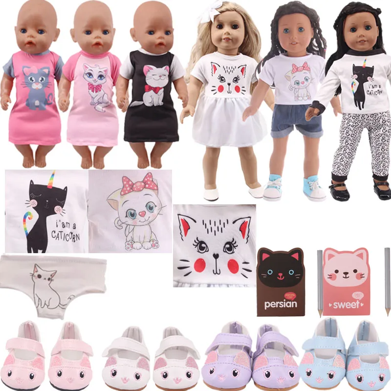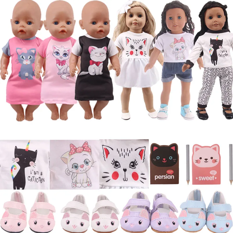Пижама для кошек, футболка, обувь подходит для 18-дюймовых американских и 43 см, Одежда для кукол новорожденных девочек, аксессуары для нашего поколения, детская игрушка