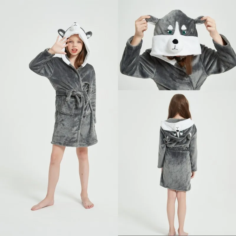 Зимний банный халат для больших мальчиков и девочек, детская Фланел...
