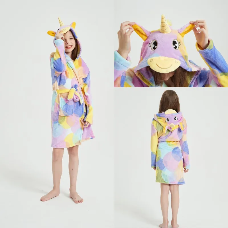Халат детский осенне-зимний с капюшоном, банный халат с единорогом ...