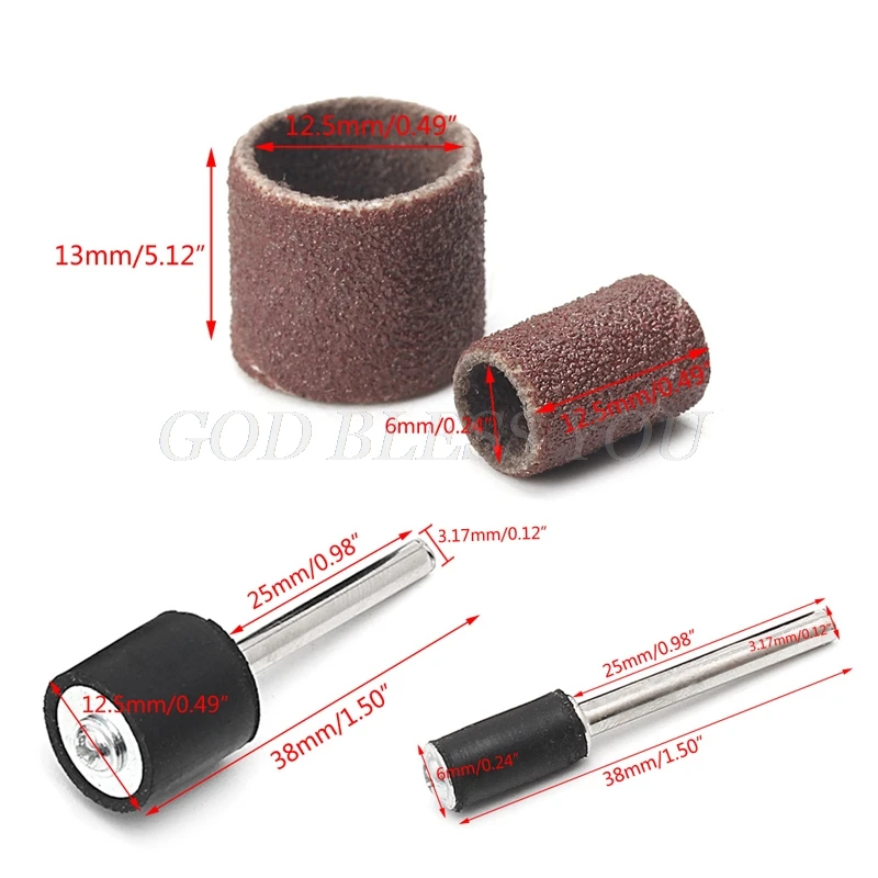 Размер:Диаметр наждачной бумаги круг: 12,5 ммВысота круга наждачной бумаги: 13 ммДиаметр оправки: 12,5 ммДиаметр хвостовика: 3 ммДлина хвостовика: 25 ммОбщая длина: 38 мм