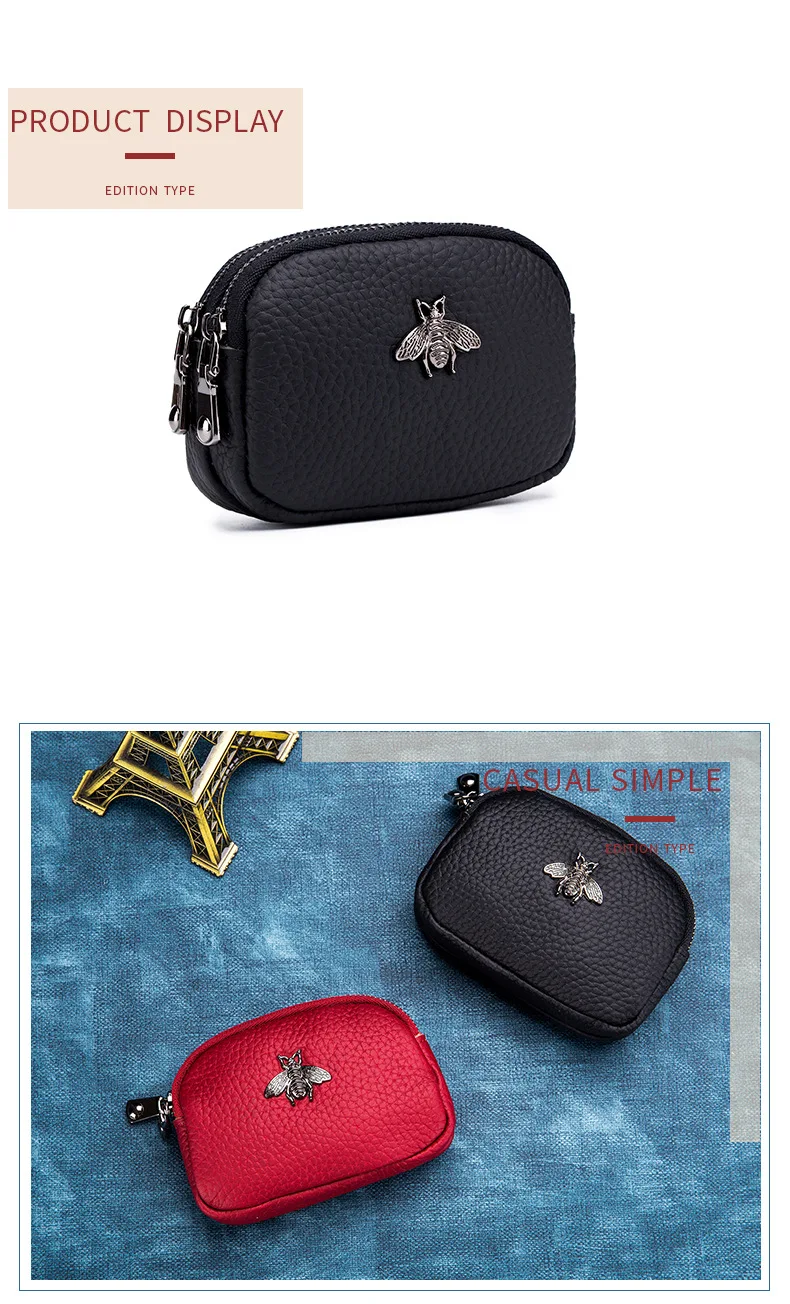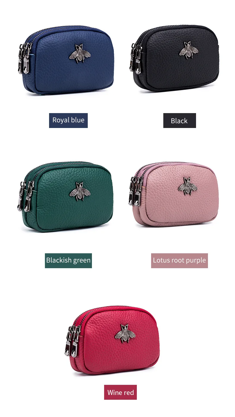 6 цветов на выбор, модная дамская сумочка с двойной молнией, портативная мини-сумка для монет, кошелек из натуральной коровьей кожи, женский кошелек