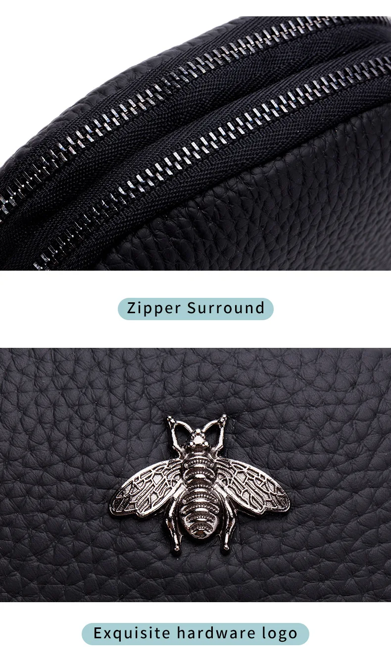Изготовлен из верхнего слоя коровьей кожи, мягкий, приятный на ощупь, украшение в виде пчелы делает его более привлекательным и красивым