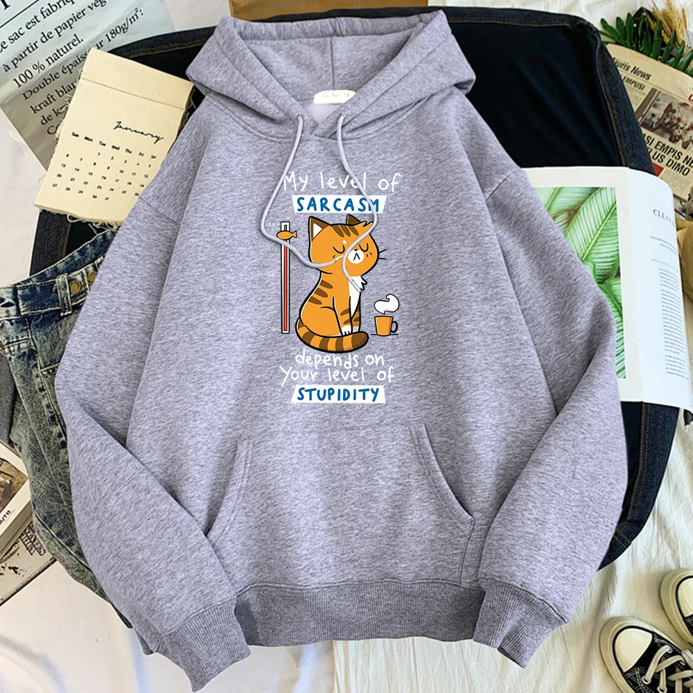 Толстовка с капюшоном для женщин Tsundere Cat, пить чай, женская толстовка большого размера, модная женская одежда, забавная толстовка в корейском стиле для женщин