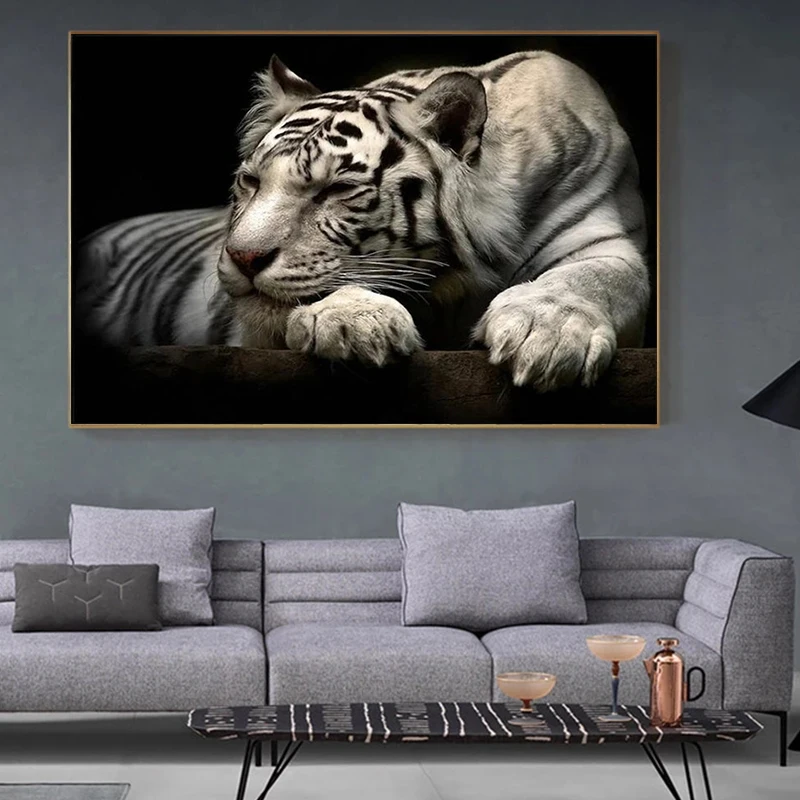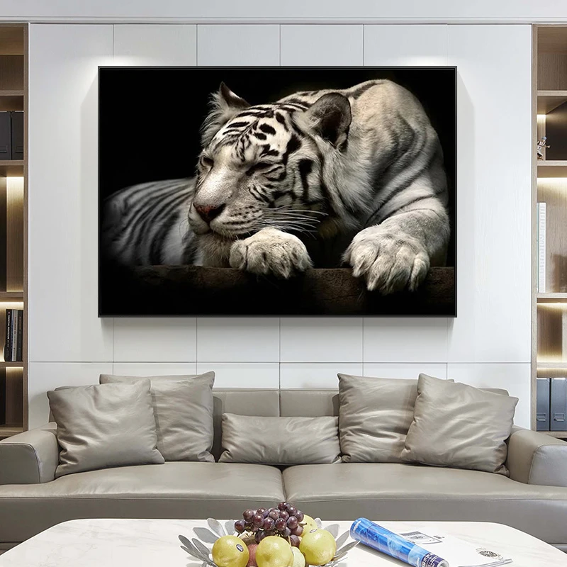 Современные настенные картины картина с изображением белого тигра года, холст, постеры и принты с дикими животными, настенные картины для гостиной, домашний декор