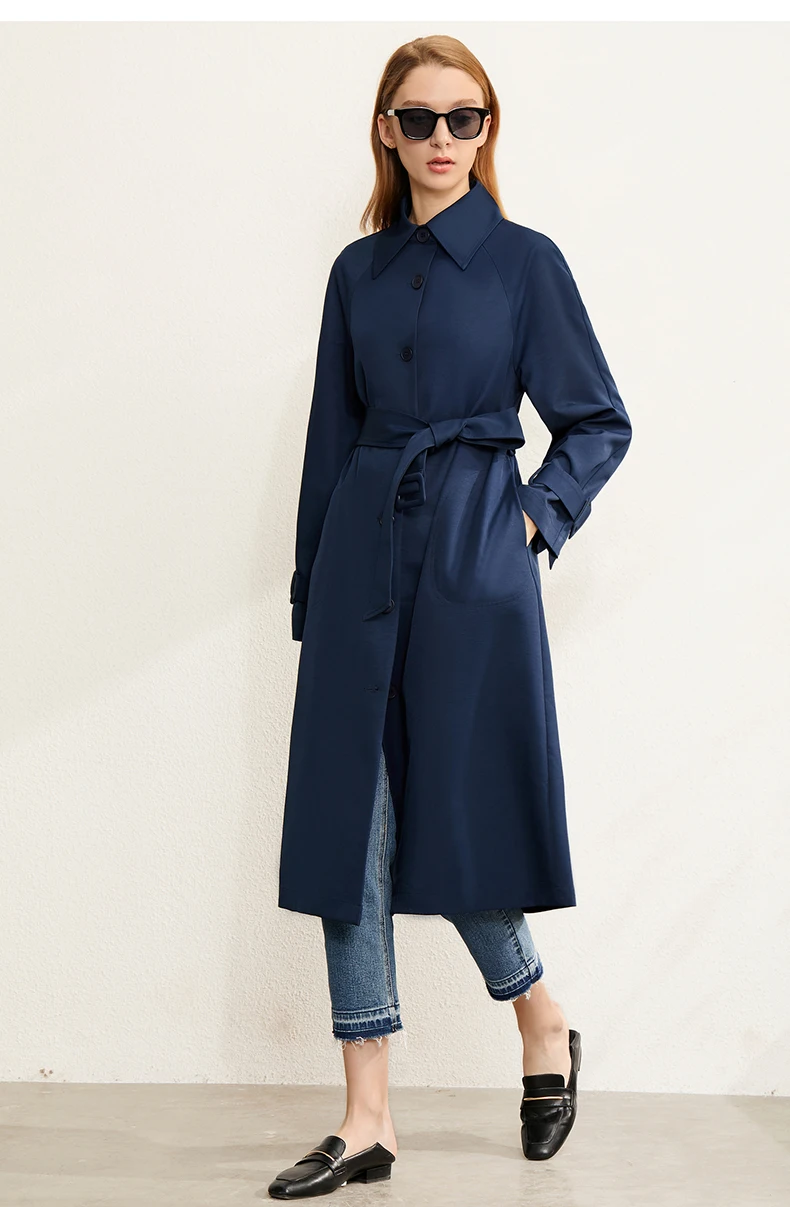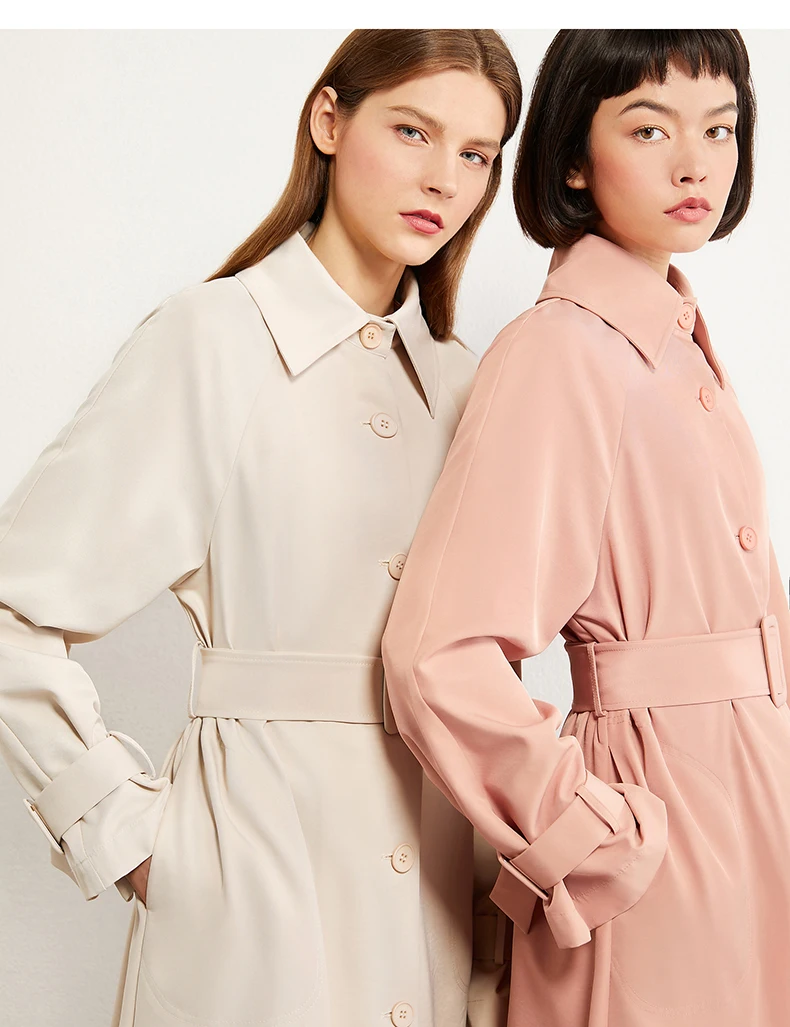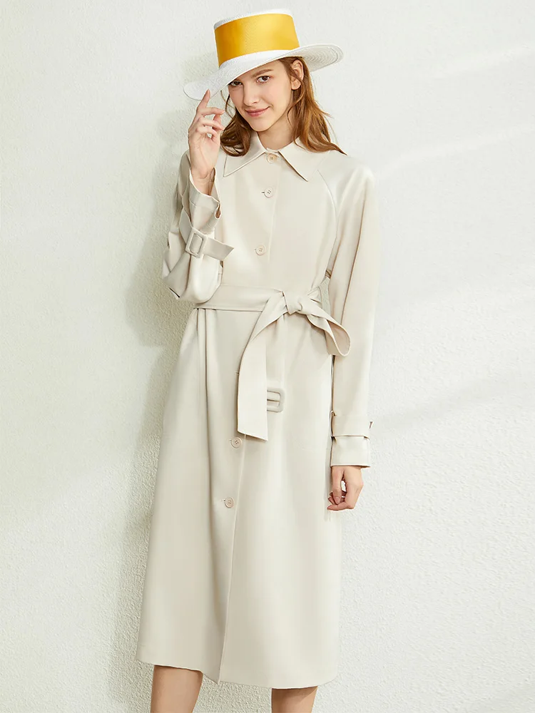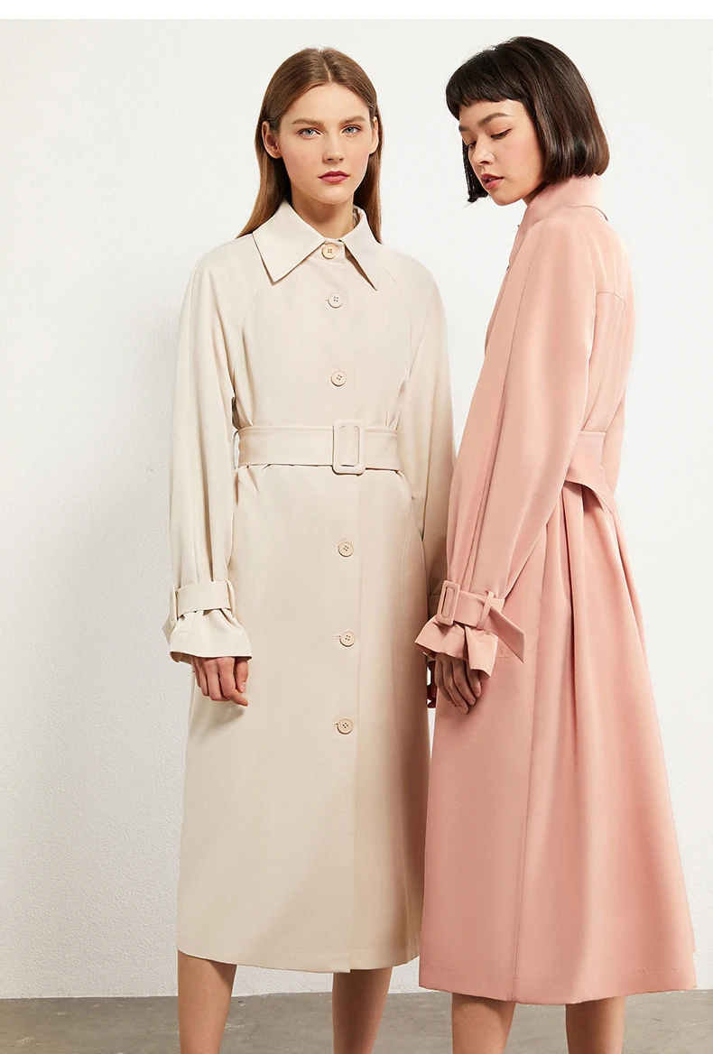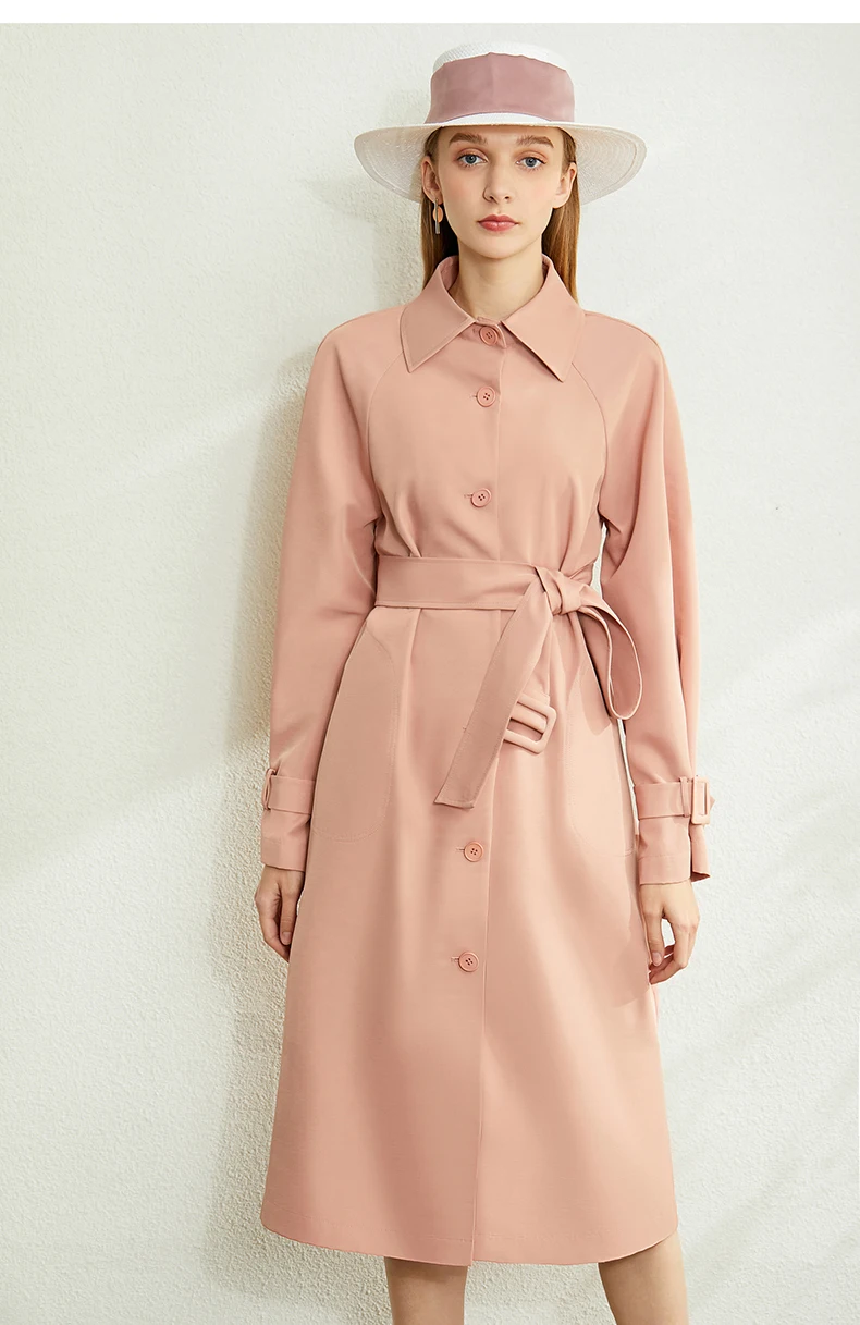 Плащ женский осенне-зимний однобортный с отложным воротником и поясом, 12027445