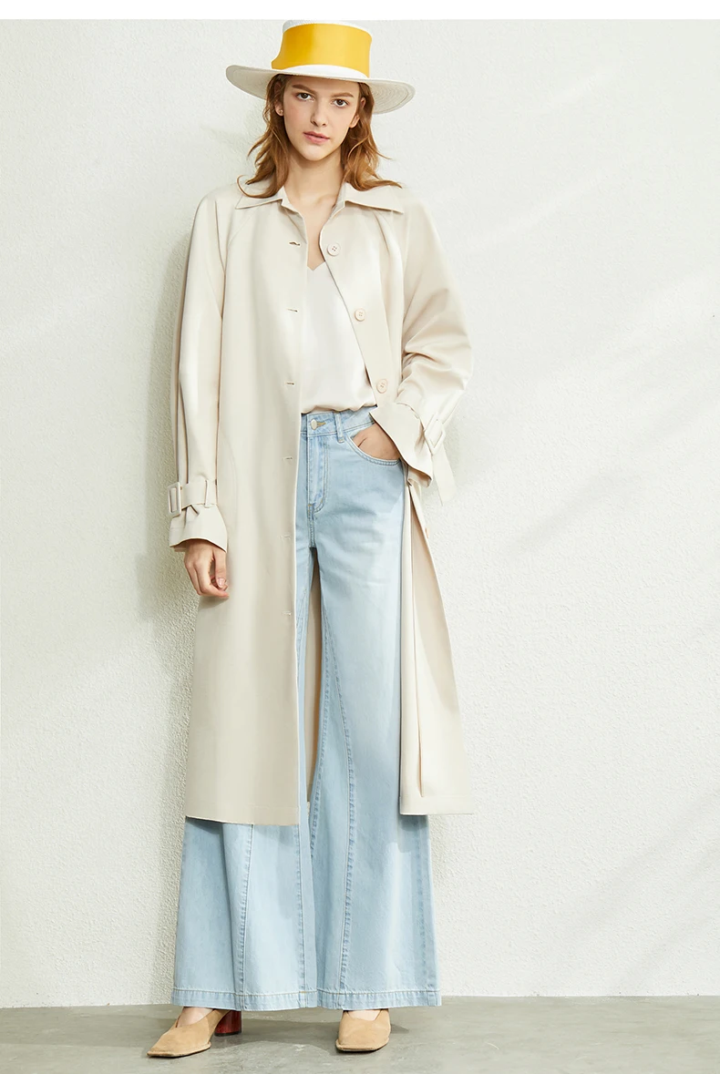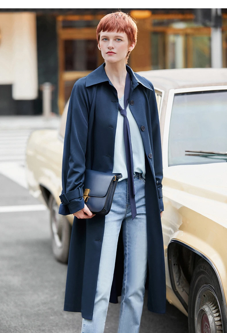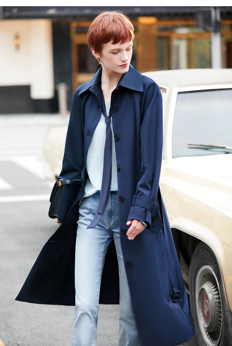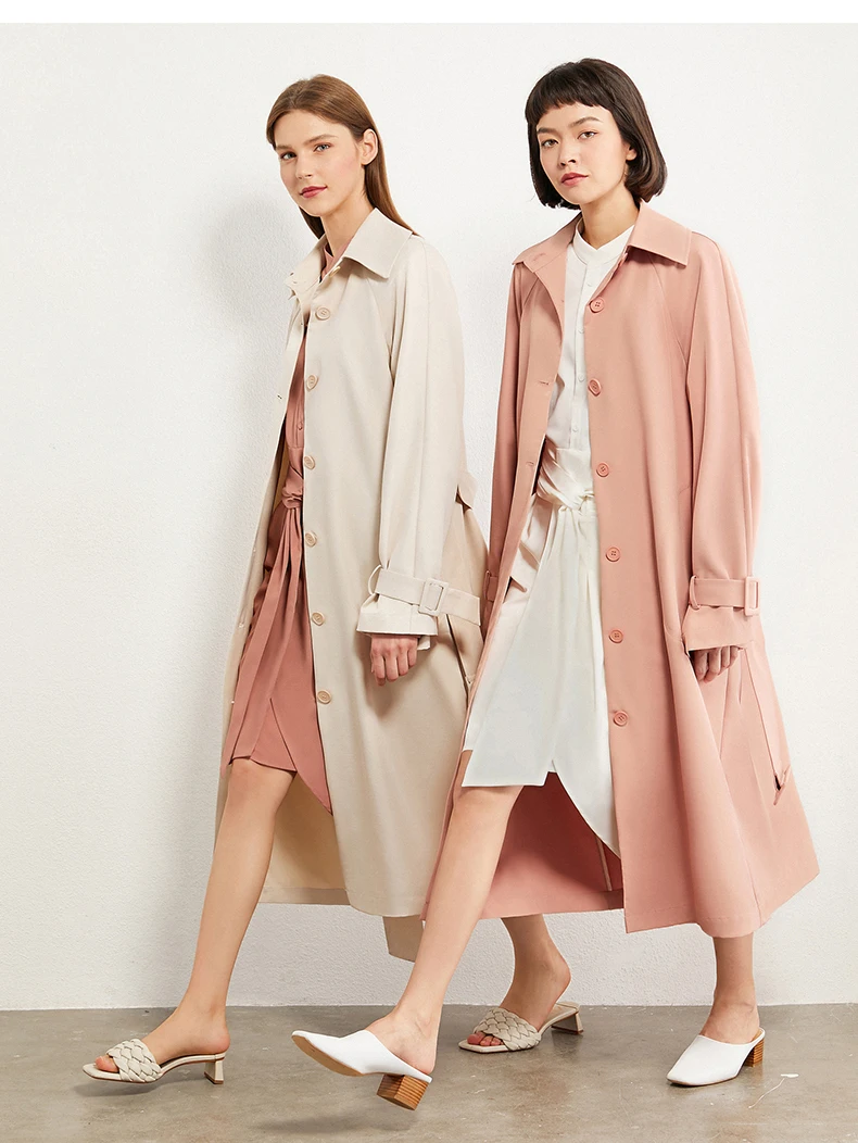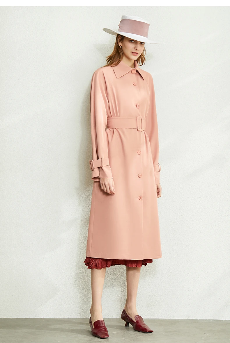 Плащ женский осенне-зимний однобортный с отложным воротником и поясом, 12027445