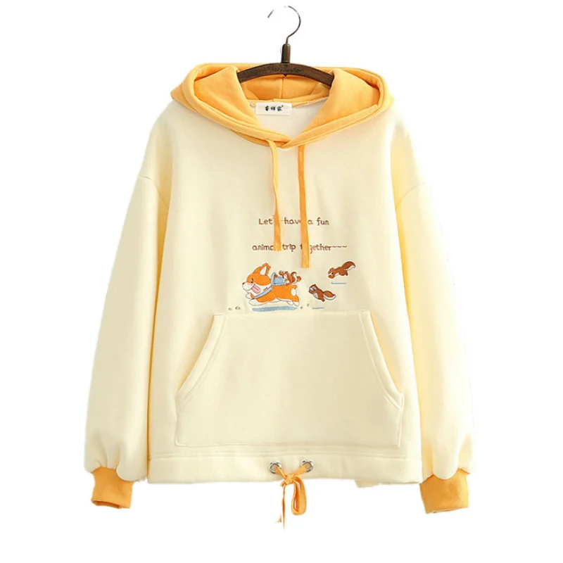 Флисовая толстовка с капюшоном 2020, Зимние толстовки с мультяшной собакой и вышивкой, Женский Повседневный пуловер с длинным рукавом, свободный женский спортивный костюм
