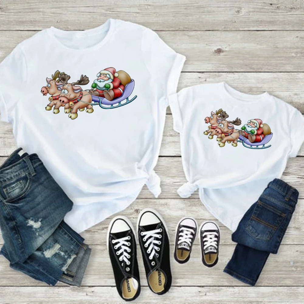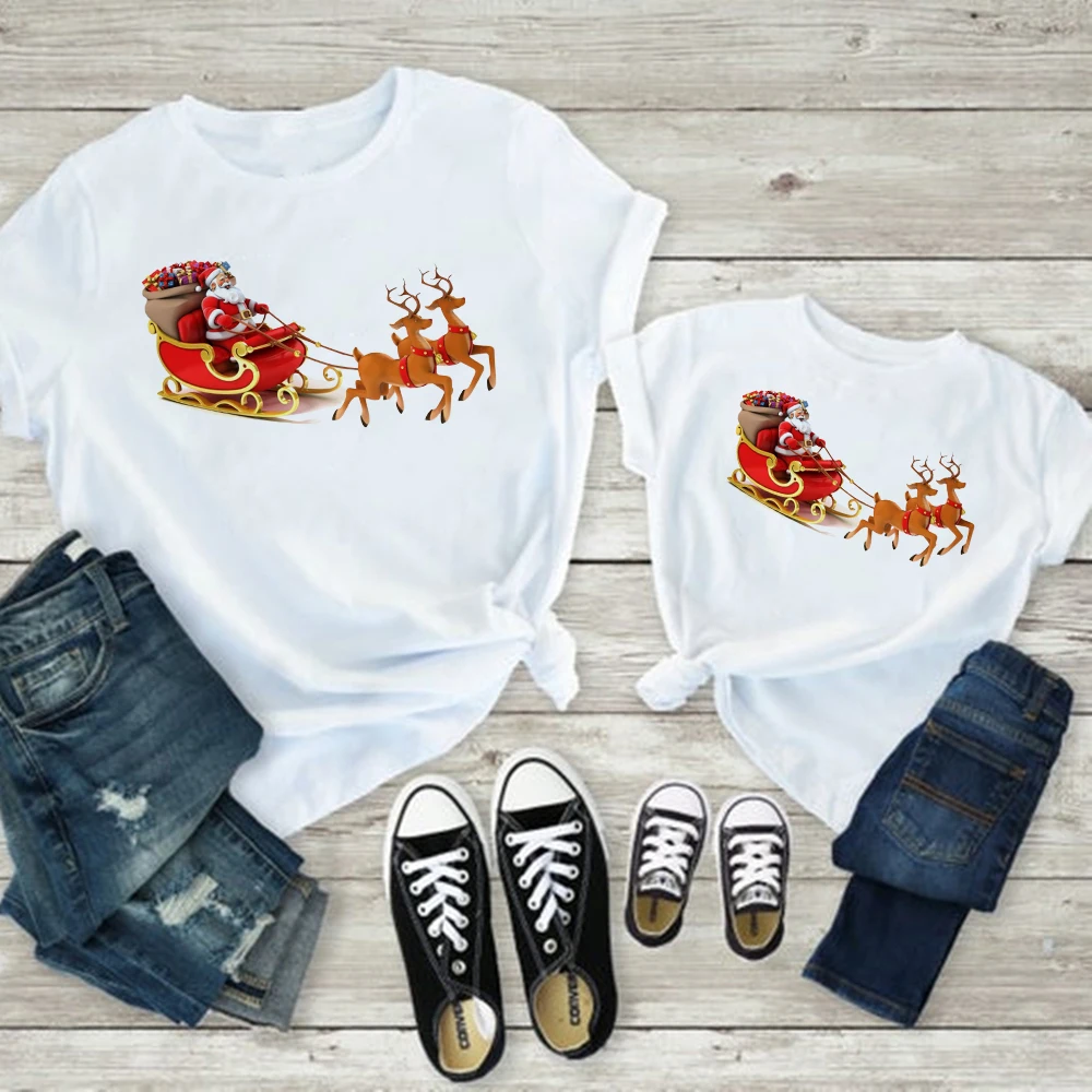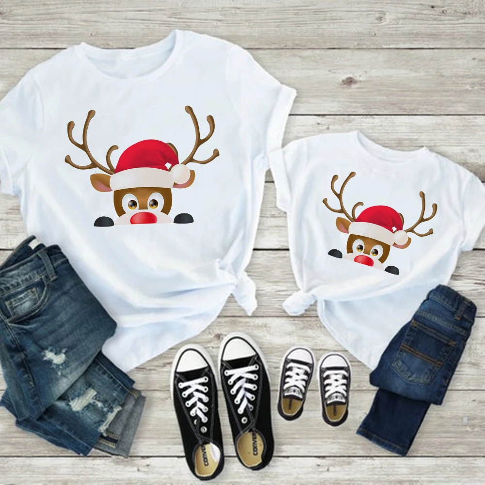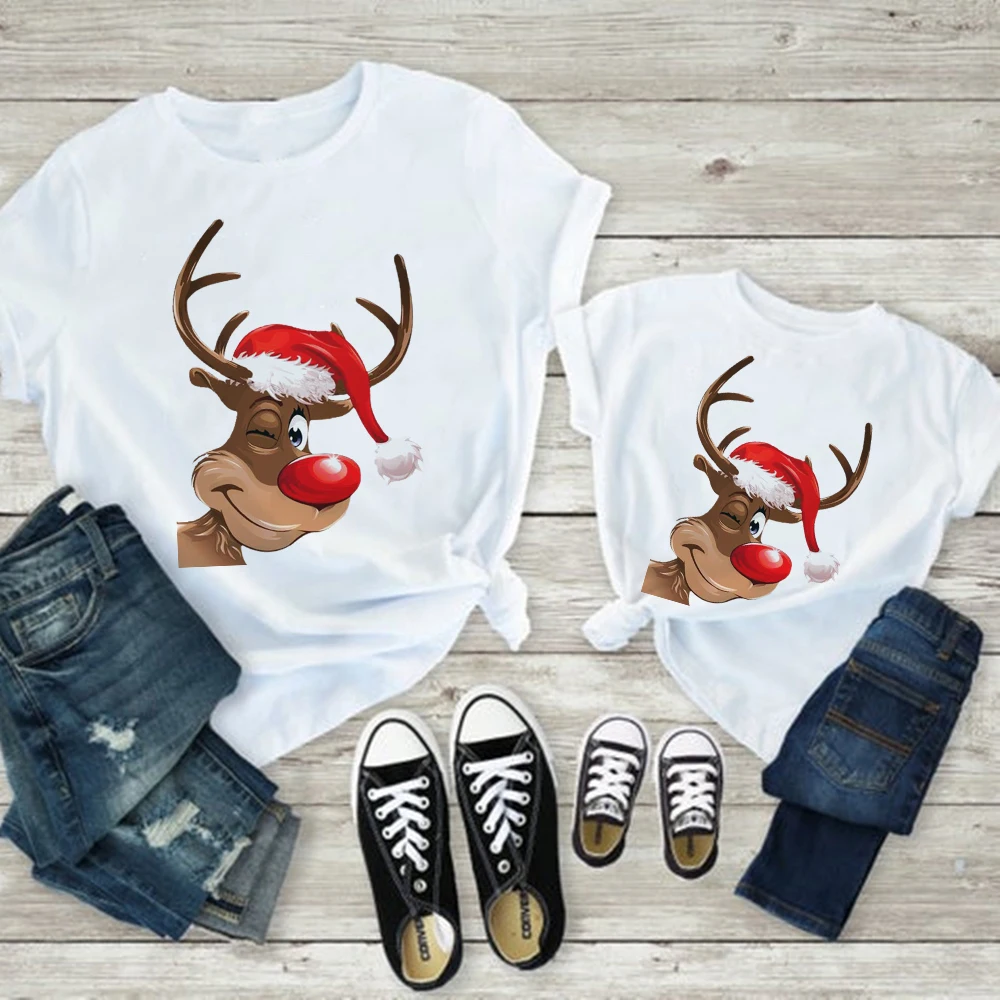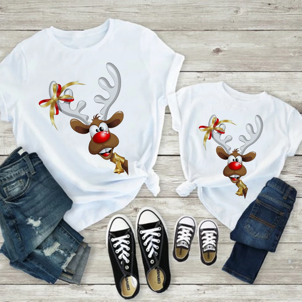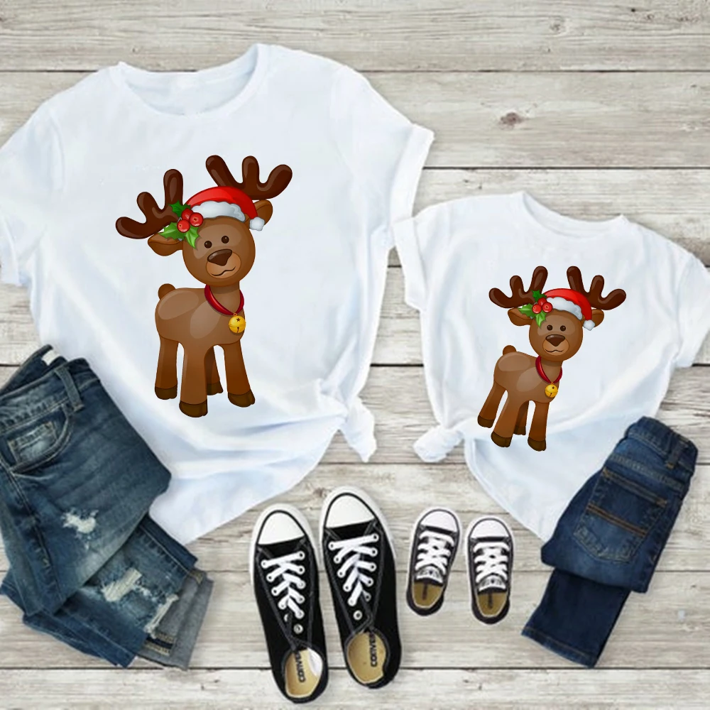 Футболка женская с принтом оленей, милая модная уличная одежда для семьи, для папы, мамы и сына