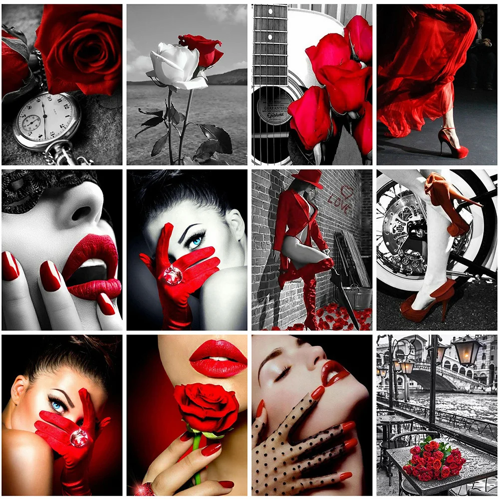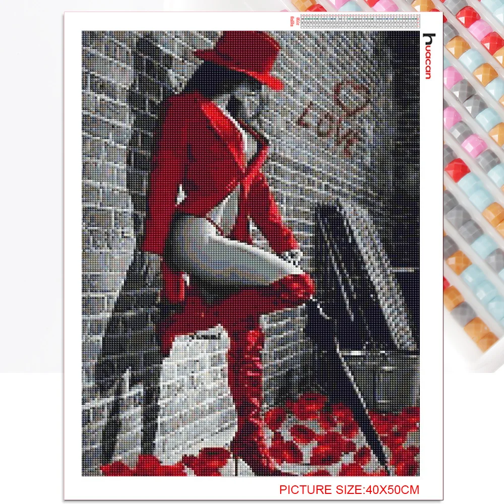 Huacan вышивка кристалами женщина алмазная мозайка цветы вышивка крестиком декор для дома