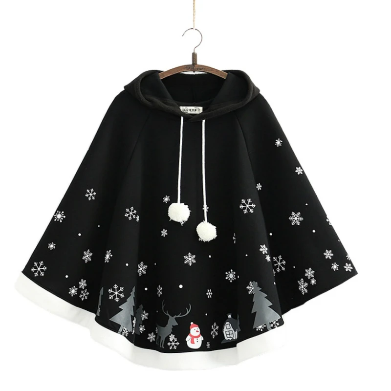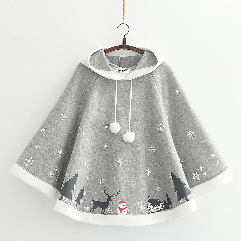 Женское флисовое пончо с капюшоном, пальто-накидка с мультяшным принтом и рукавом летучая мышь, женская зимняя верхняя одежда, куртка, 2020