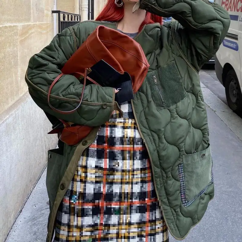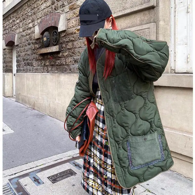 Женская хлопковая парка TVVOVVIN, с подкладкой, в стиле ретро, с полосками, свободная, тонкая, длинное зимнее пальто, W5, 2020
