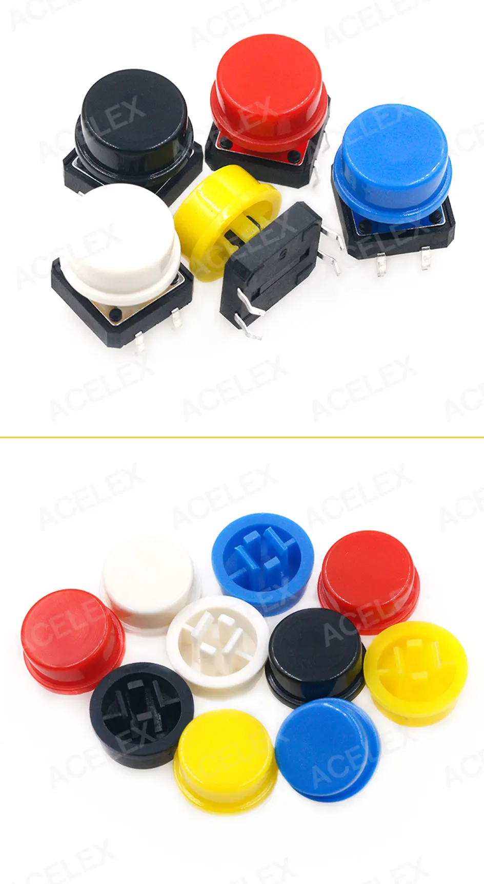 Тактильный кнопочный переключатель, 25 шт, мгновенный 12*12*7.3 мини-выключатель Кнопка + 25 шт тактовых колпачков (5 цветов) для переключателя Arduino