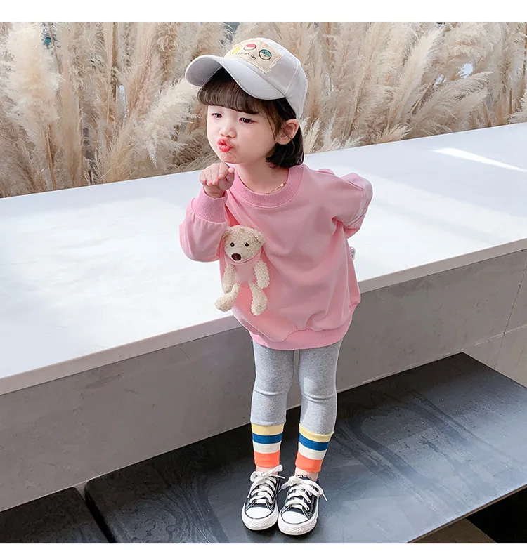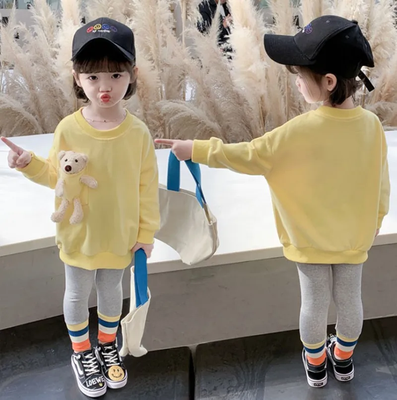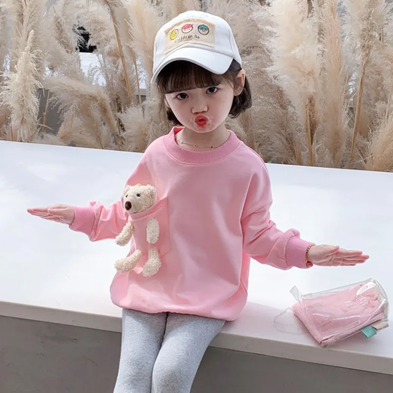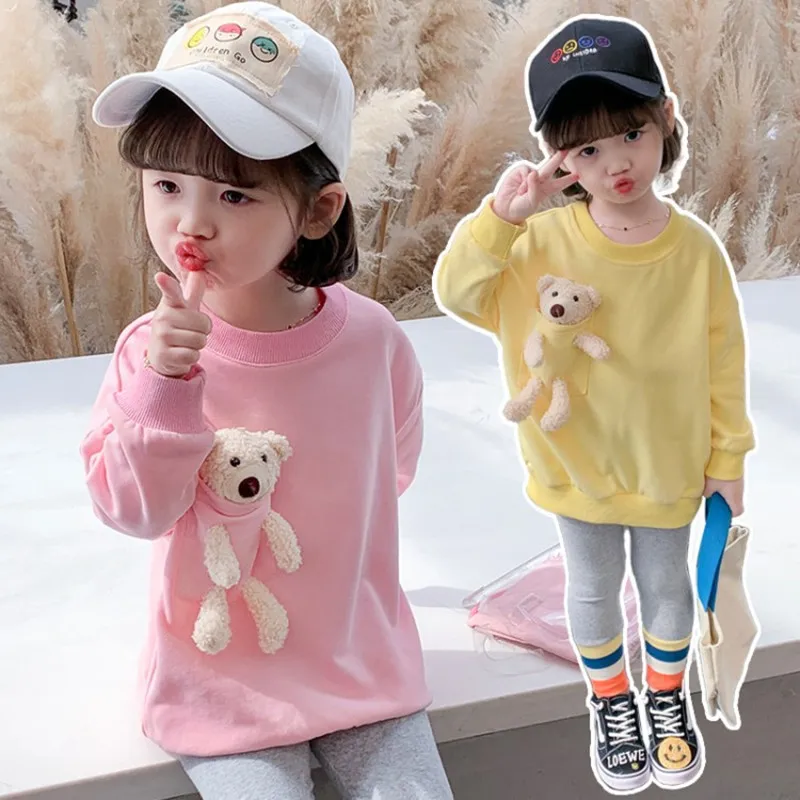 Одежда для маленьких девочек, осень 2021, детская одежда, свитшот для девочек, Весенняя детская одежда, детские толстовки с милым медведем, топы для девочек от 18 месяцев до 7 лет