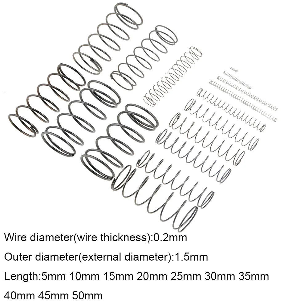 Пружина Механическая 0,2*1,5*5-50 мм, внешний диаметр 1,5 мм, x 5-50 мм, 20 шт.