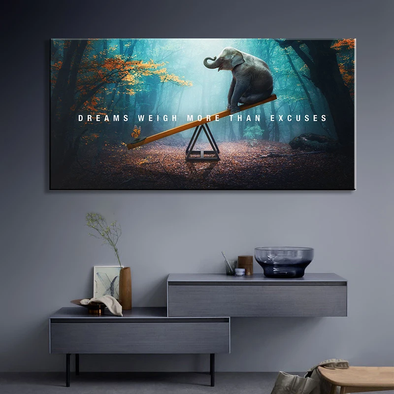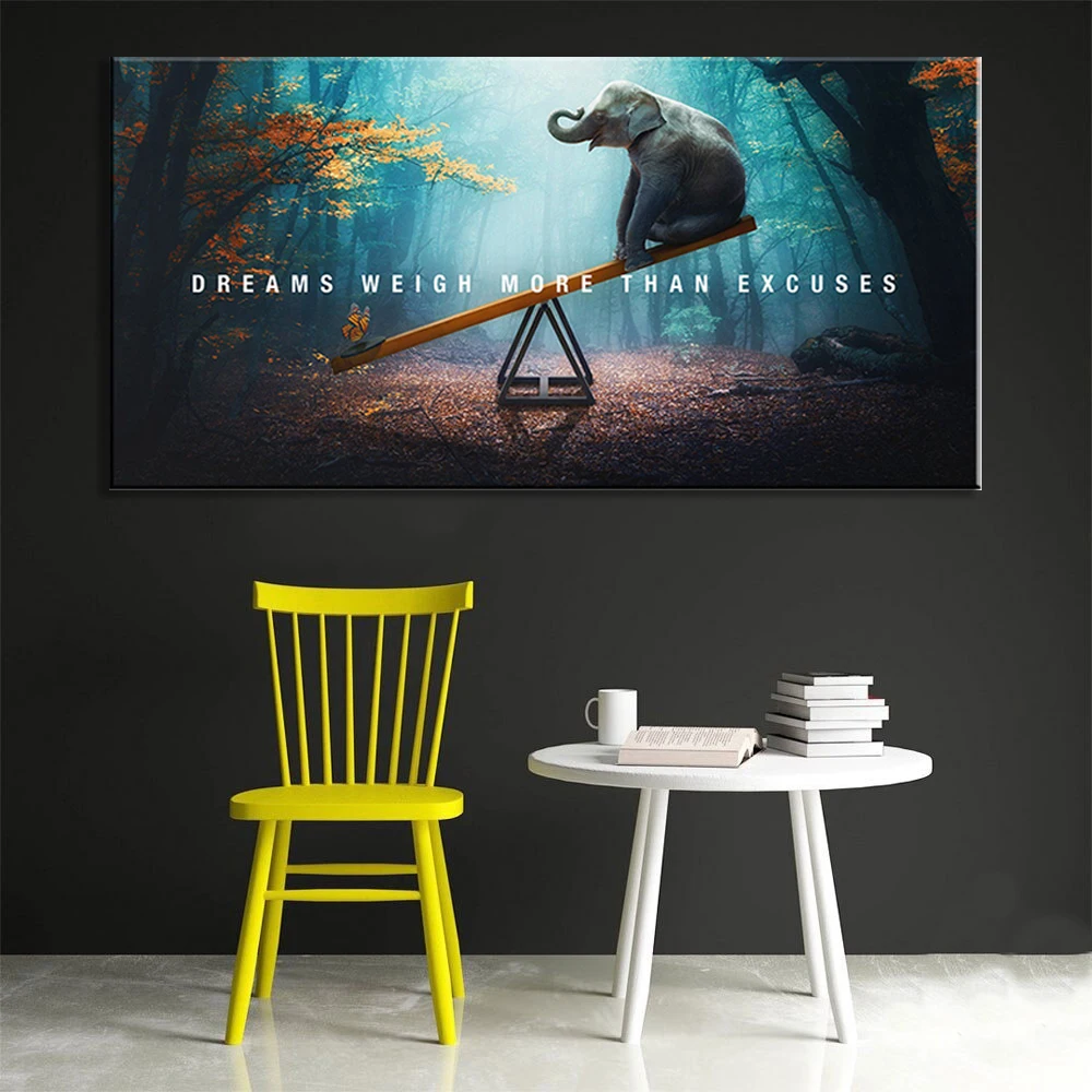 Hd принт дома холст картины Настенный декор Цитата плакат с дизайном слон мечты весит больше, чем оправданий художественная фотография Гостиная
