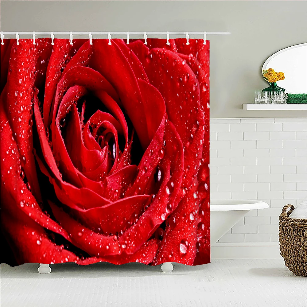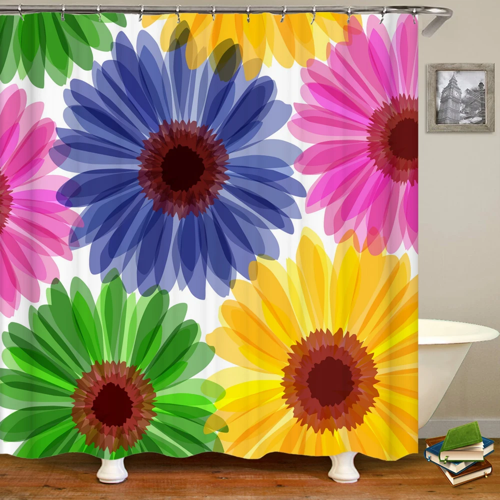 Занавеска для душа, с цветами, зелеными растениями, 3d, водонепроницаемая занавеска для ванной, водонепроницаемая, декоративная, с крючками, из полиэстера 180x240