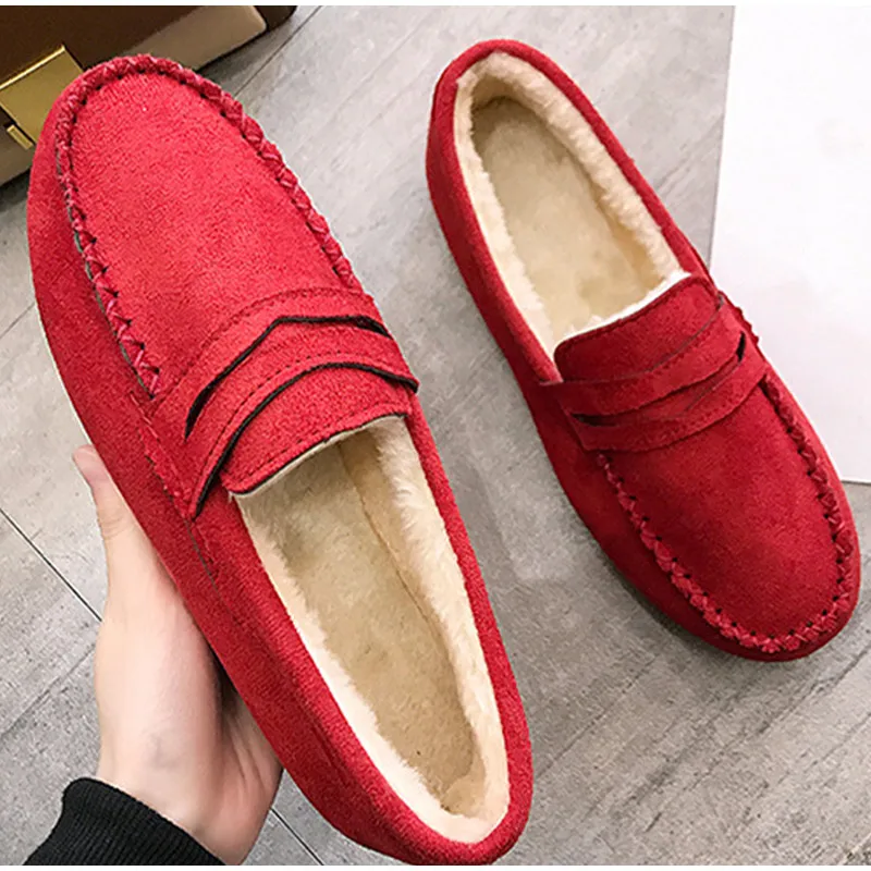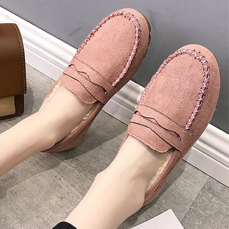 Лоферы женские с прошитым коротким плюшем, Повседневная зимняя обувь без застежек, нескользящая подошва, теплая удобная обувь на плоской подошве