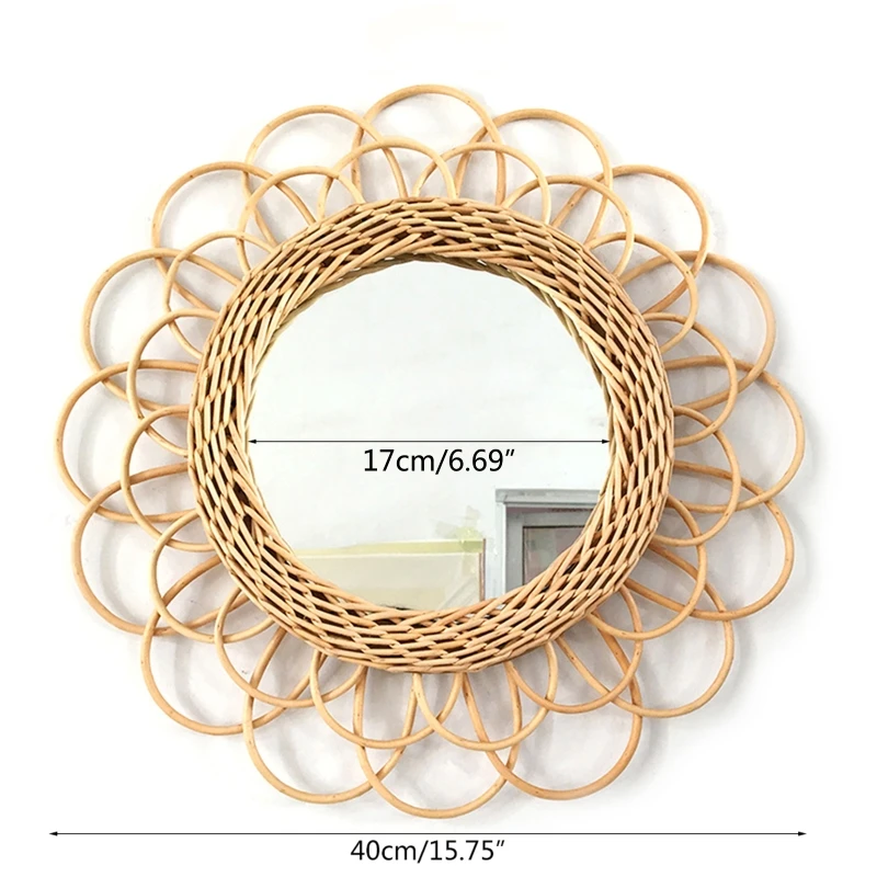 Ротанговое инновационное художественное украшение, круглое зеркало для макияжа, гардеробная, ванная комната, настенная подвеска