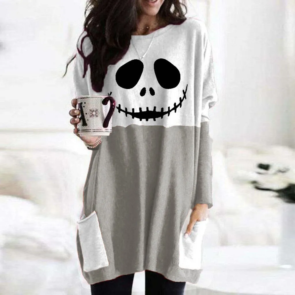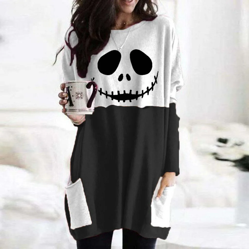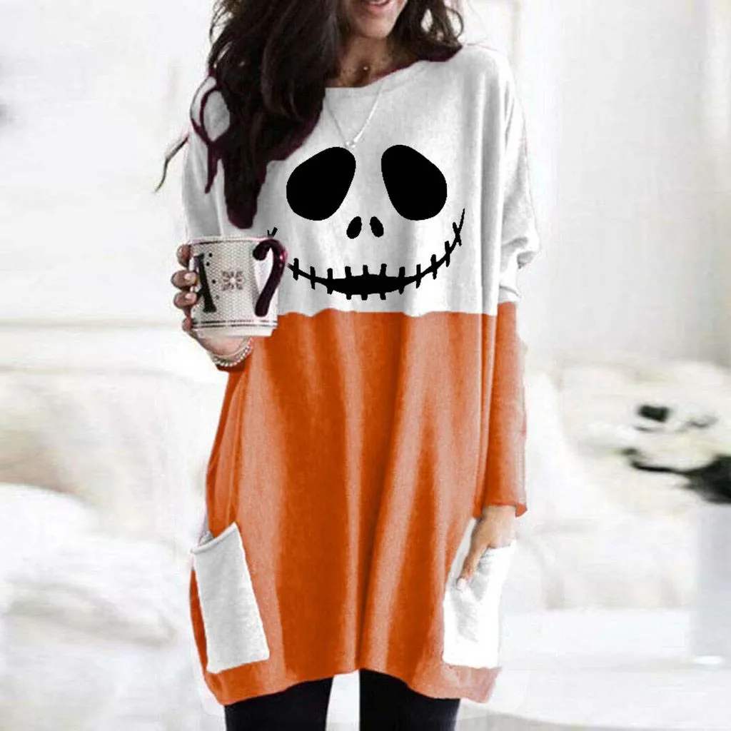 Номер моделиWomen's Halloween Ghost Pumpkin Shirt Face Costume Long Sleeves Tops B