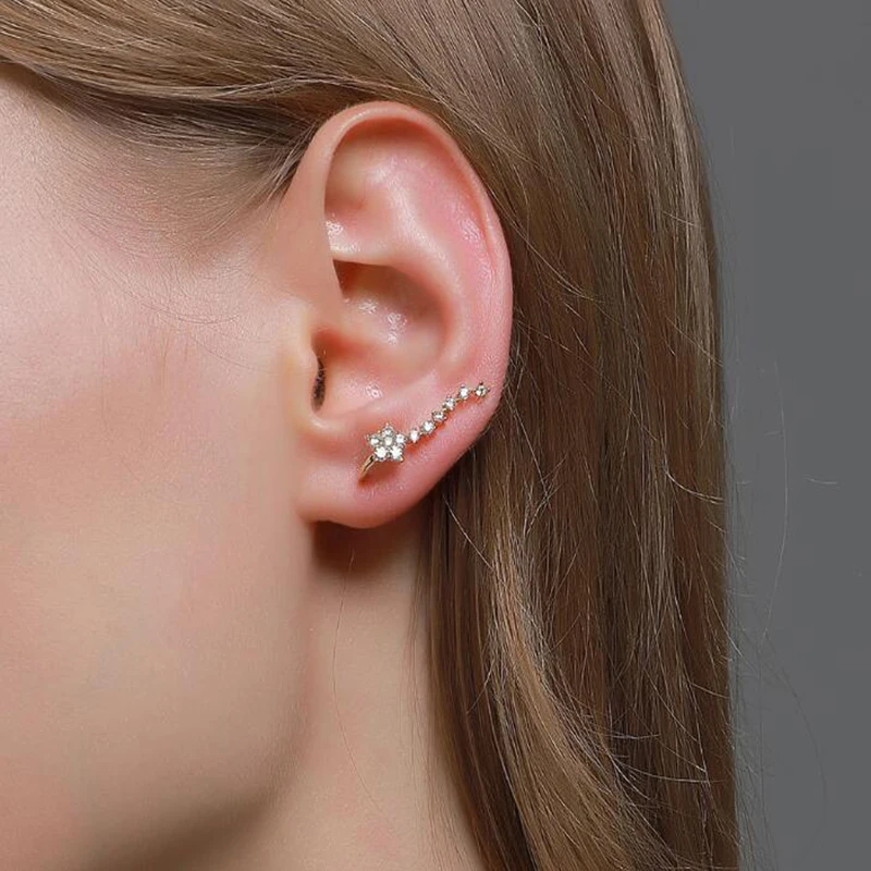 Женские серьги-гвоздики в форме звезды, стразы, циркон, золото, серебро, вечерние, ювелирное изделие