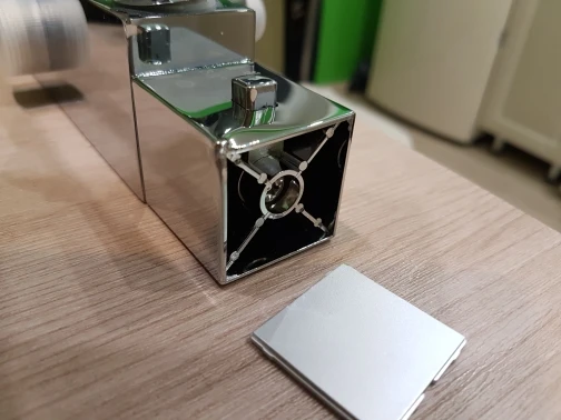 упаковано хорошо, но декоративные крышечки в маленькой коробочке просто лежат, даже без бумаги, потому посылка побрякивает, но вроде остались целыми. доставлено почтой за 6 дней. (из Челябинска в Санкт-Петербург). тяжёлый, почти 1.5 килограмма. покрытие без дефектов, ручки крутятся нормально, есть маркировка, что включают и температура. пока нет возможности проверить работу.