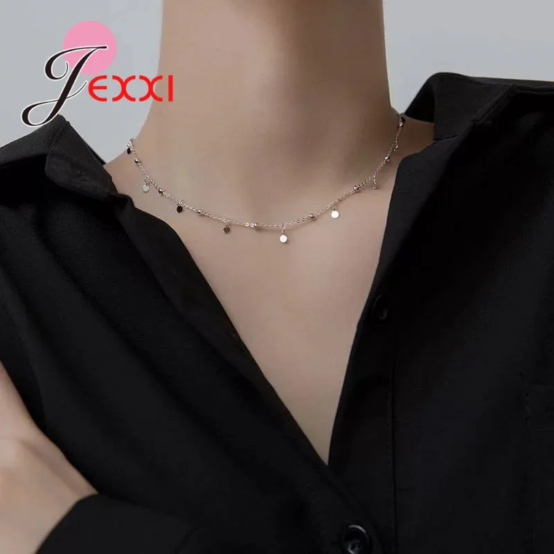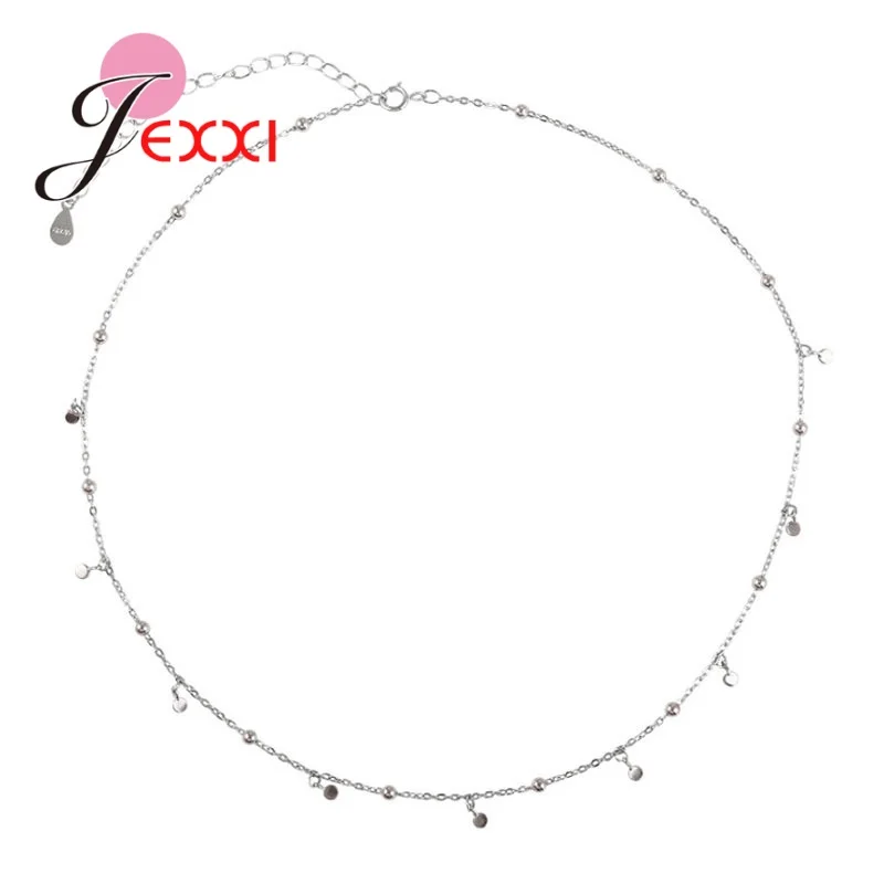 Новое модное серебряное ожерелье с цепочкой из стерлингового серебра 925 пробы для женщин и девочек, простые Стильные изысканные ожерелья для свадьбы и помолвки