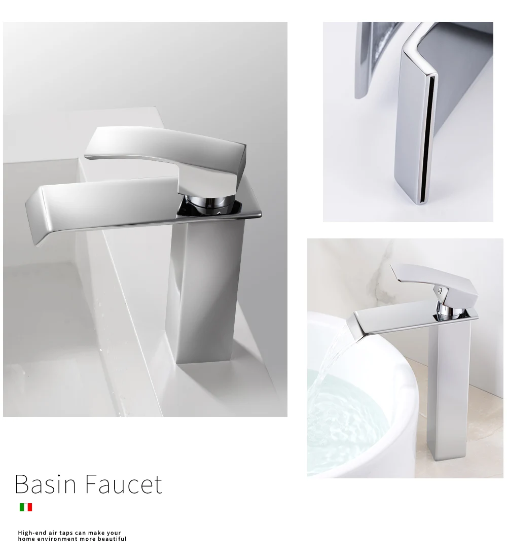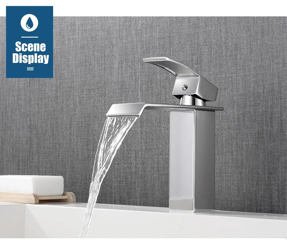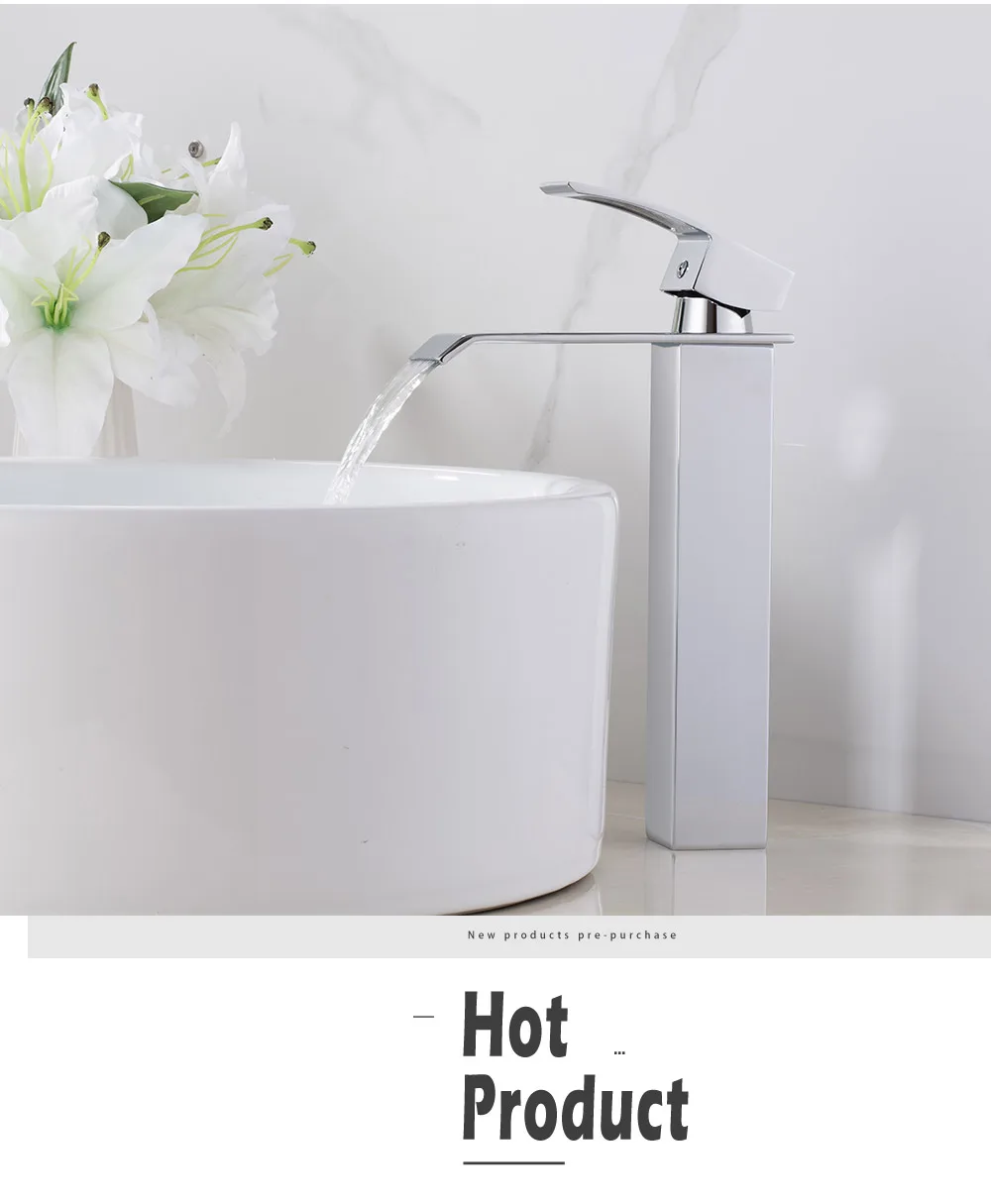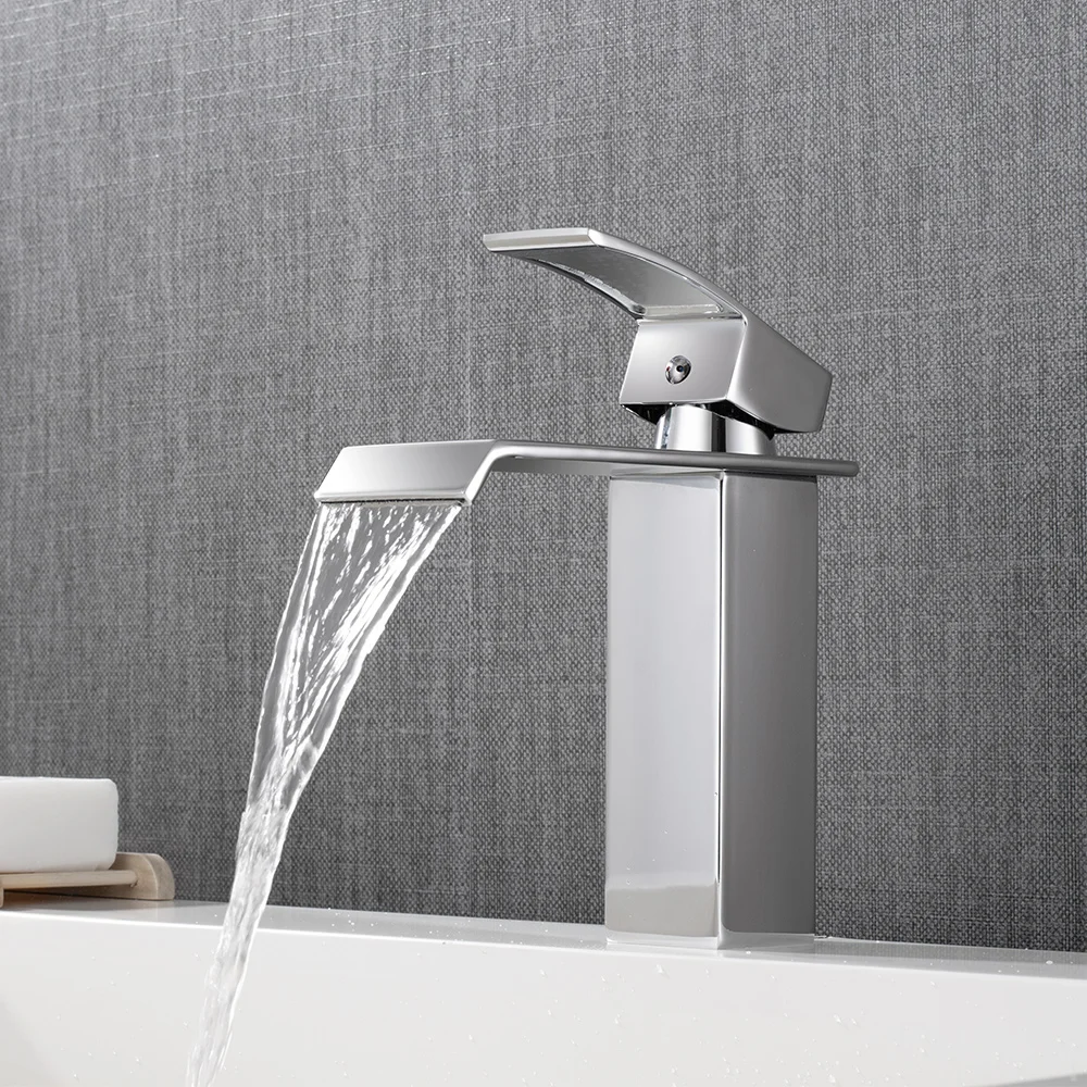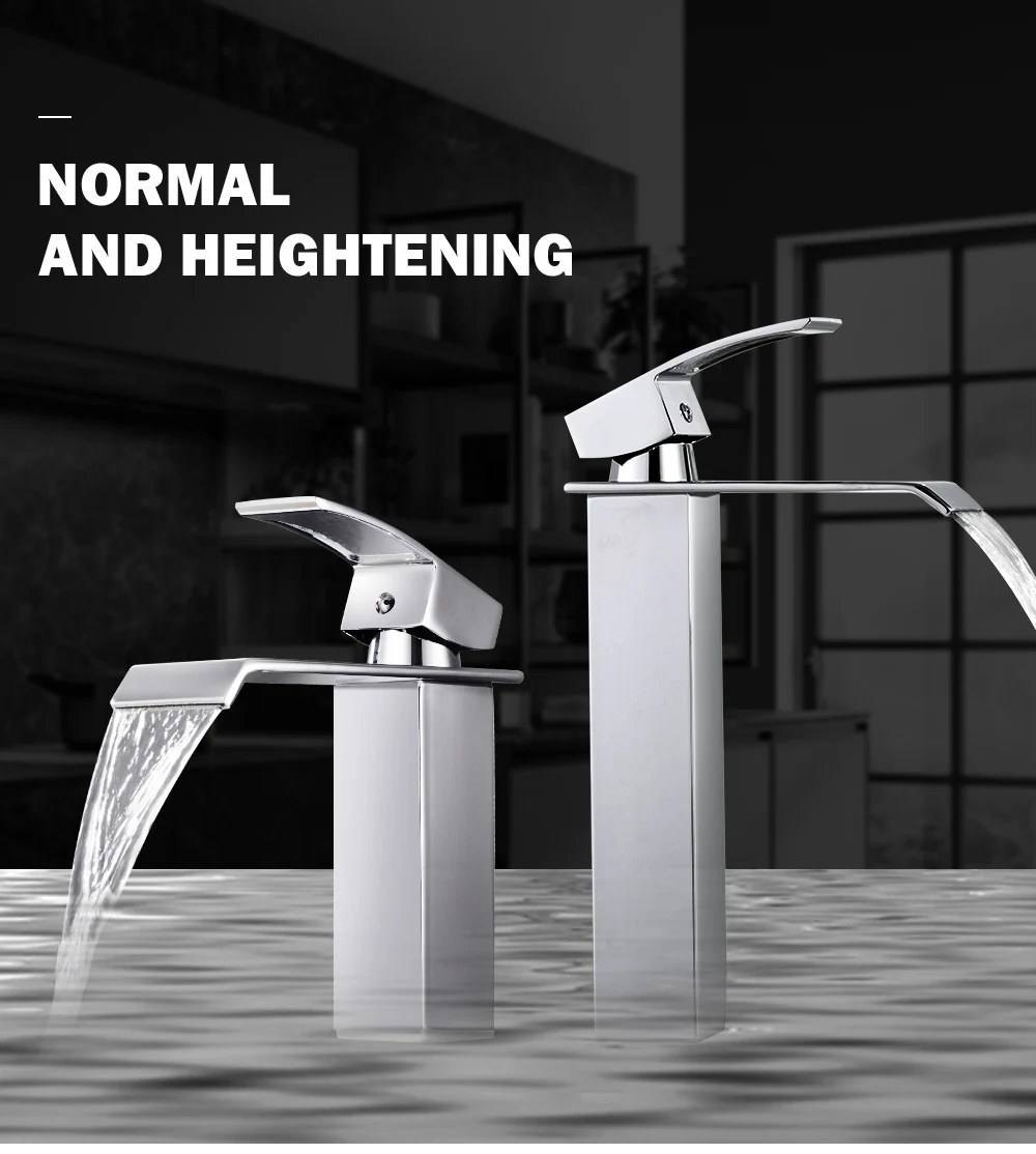 Полированный Смеситель для ванной комнаты Водопад, однорычажный кран для раковины, одно отверстие, хромированная латунь, для горячей и холодной стирки