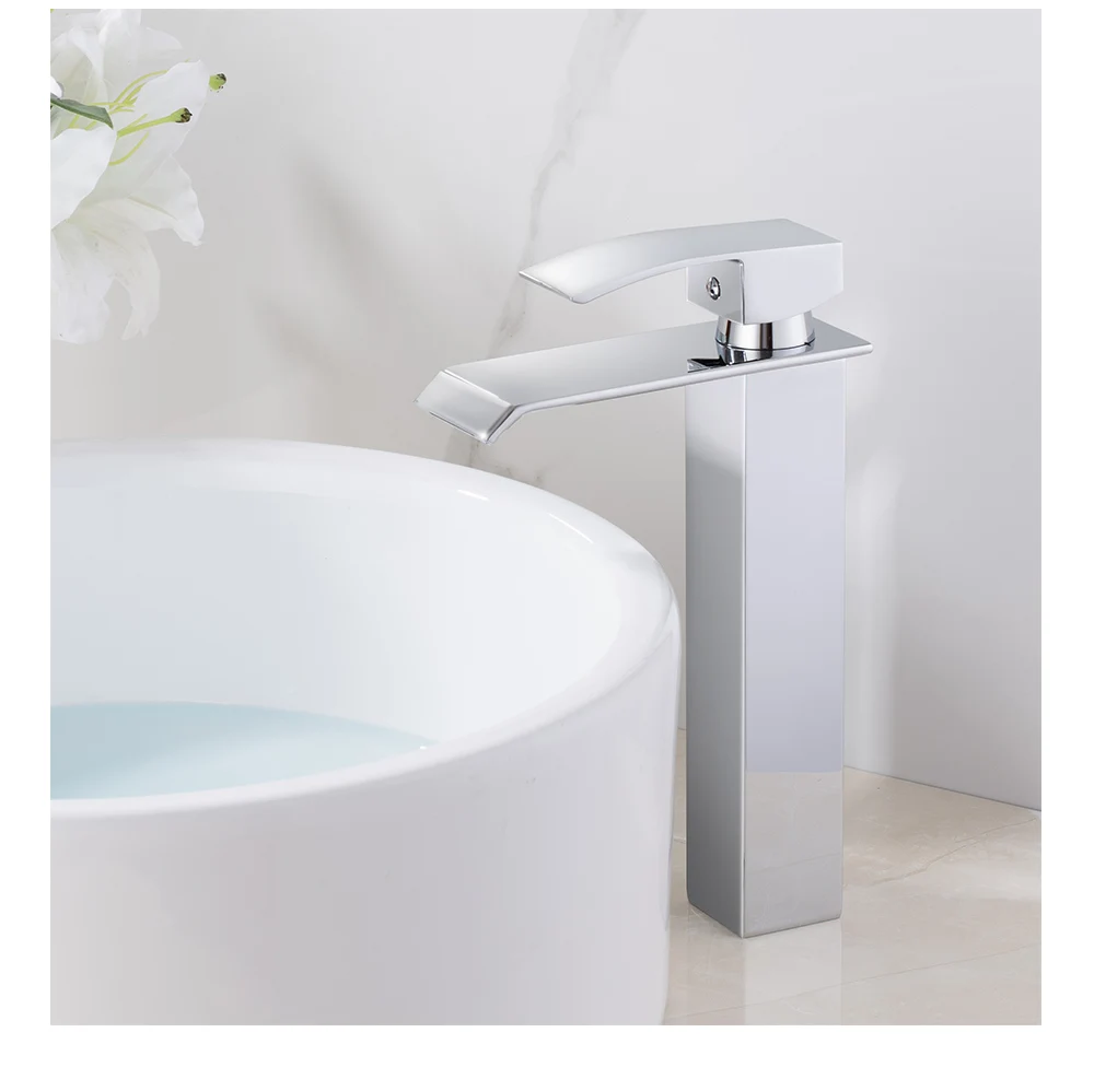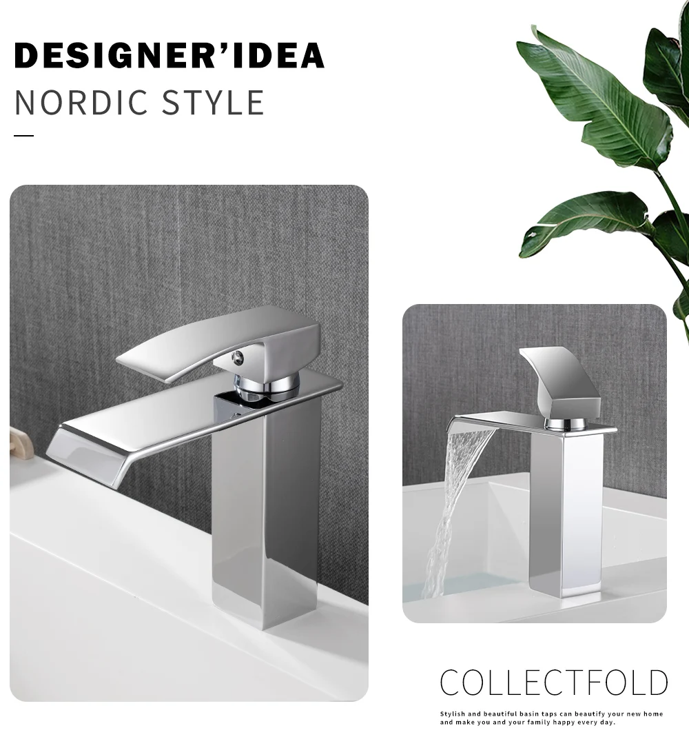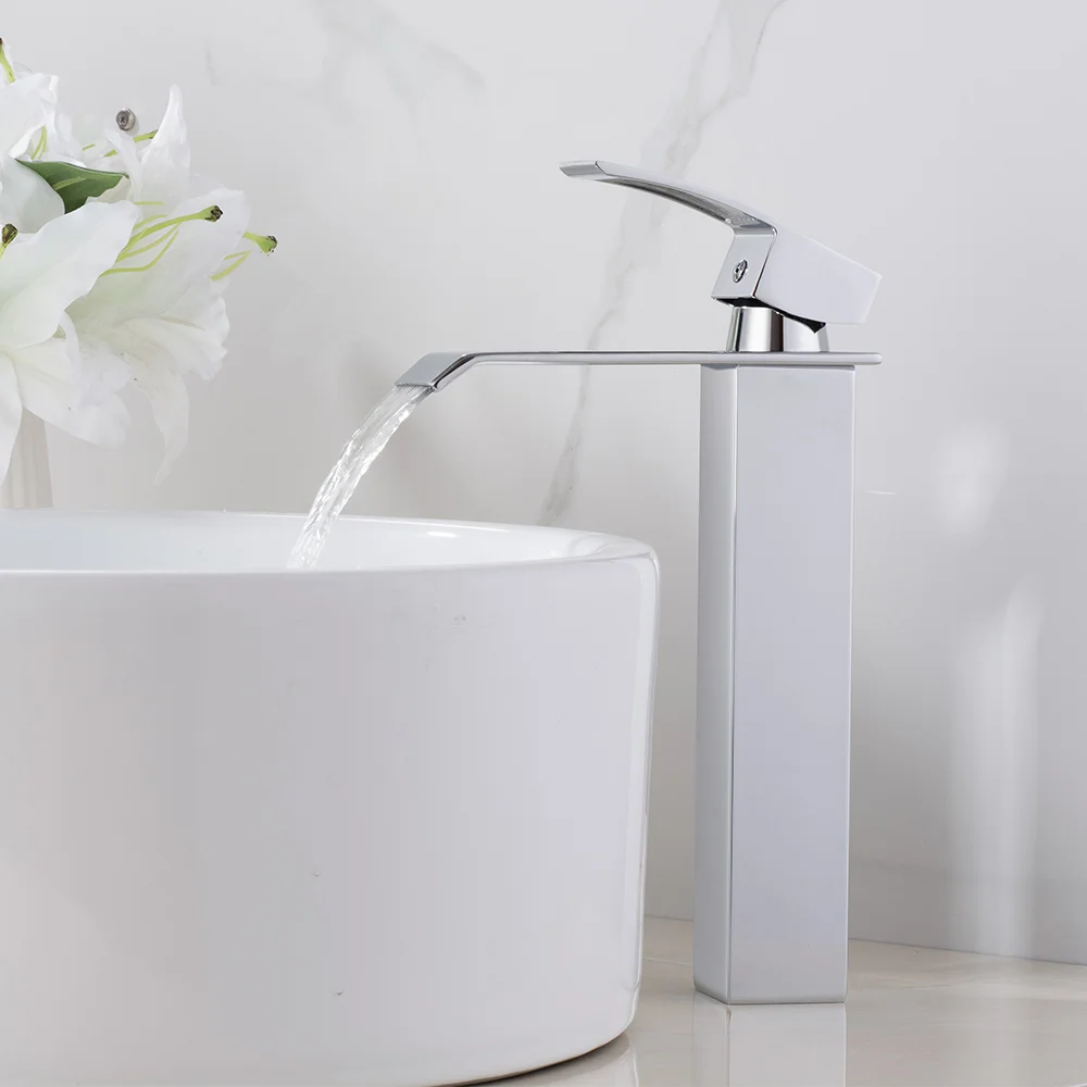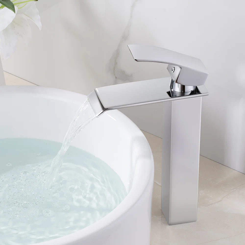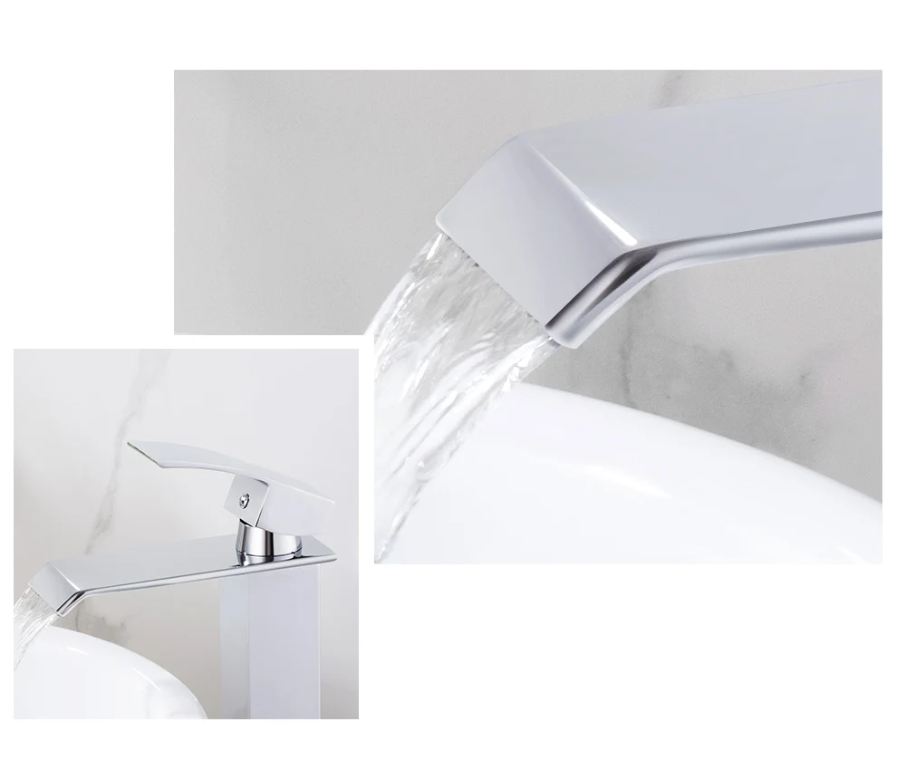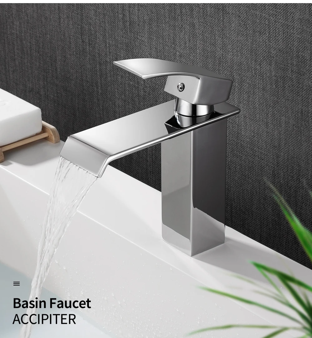 Полированный Смеситель для ванной комнаты Водопад, однорычажный кран для раковины, одно отверстие, хромированная латунь, для горячей и холодной стирки