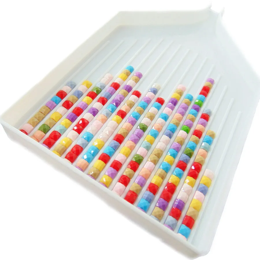 1. Выберите один цвет в соответствии с цветовым кодом и поместите алмазы в тарелку;2. Встряхивание пластины, чтобы сделать алмазы вверх;3. Налейте ручку клеем, а затем приклейте ее к полотну;4. После завершения слегка прижмите бриллианты рукой или книгой, чтобы они были идеально закреплены.Советы: алмазы несъедобные, пожалуйста, держите их подальше от маленького ребенка.