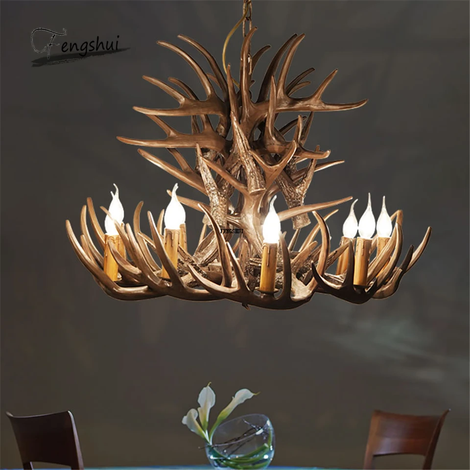 Ретро светодиодный Люстра E14 подвесной светильник освещения Hanglamp промышленный бак оленьи рога Спальня Гостиная Кухня настенные светильники