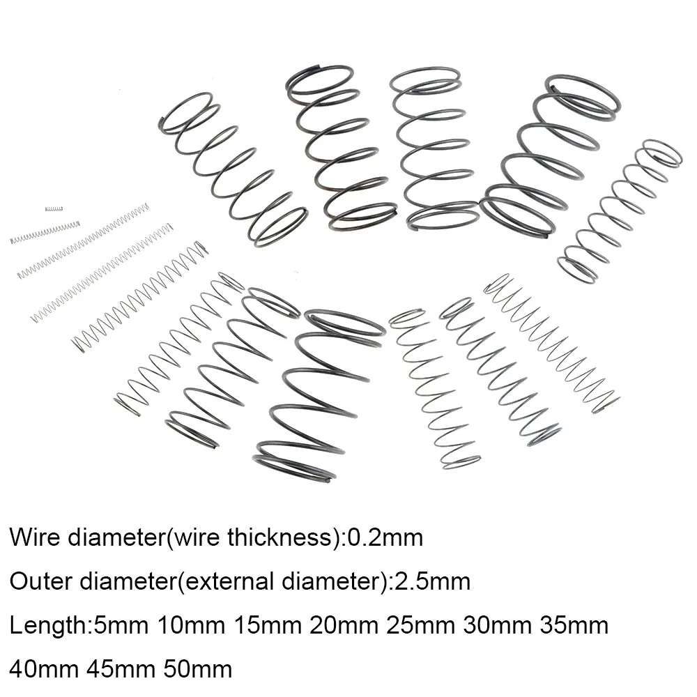 20 шт. 0,2*2,5*5-50 мм пружинный стальной Малый сжатие релиз Механическая возвратная пружина давление пружины OD 2,5 мм 0.2x2.5x5-50 мм