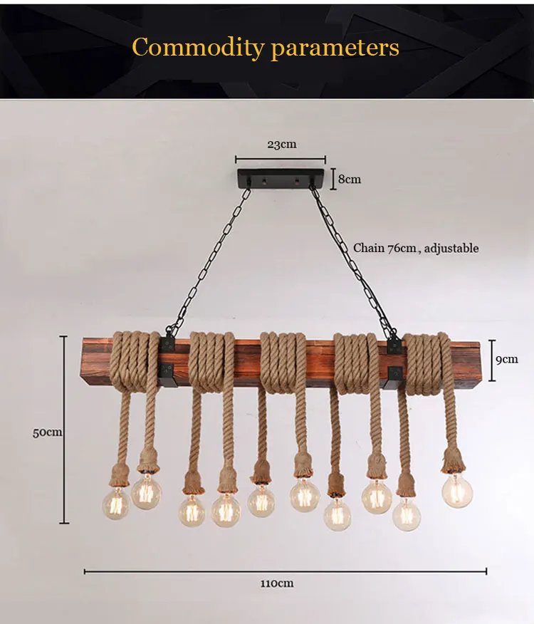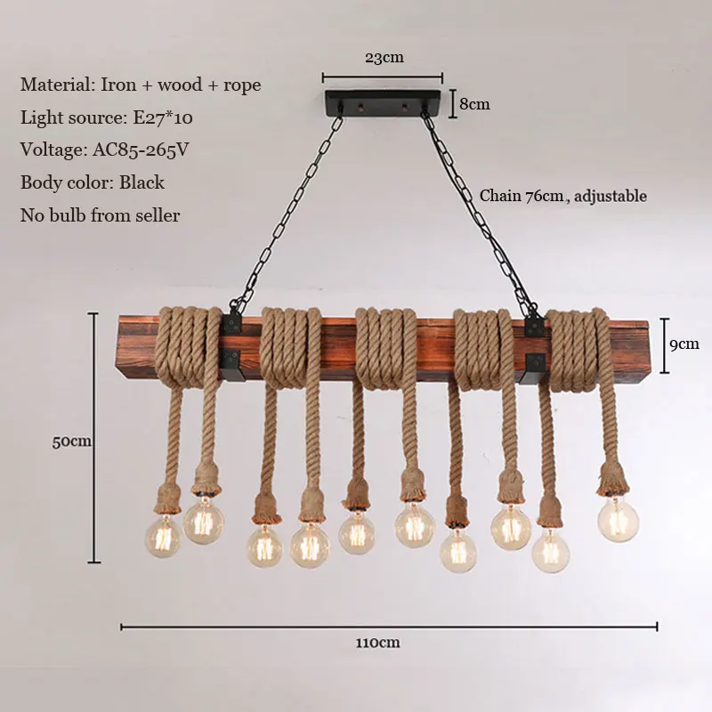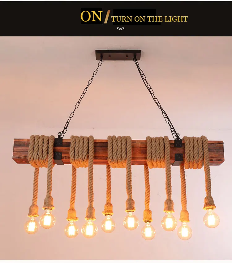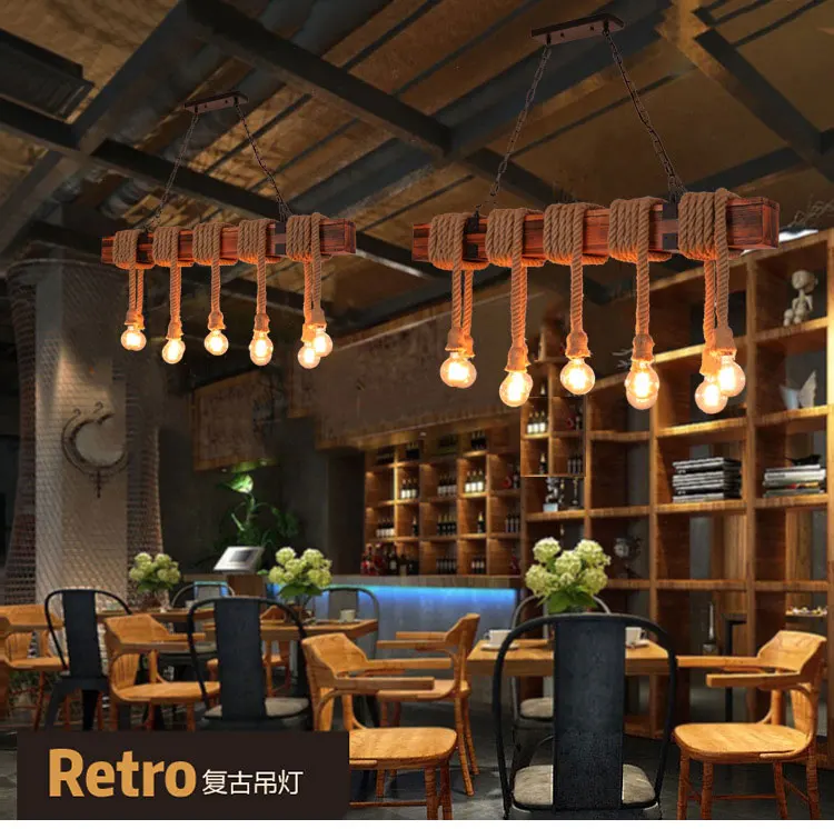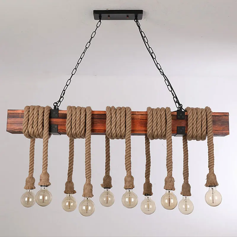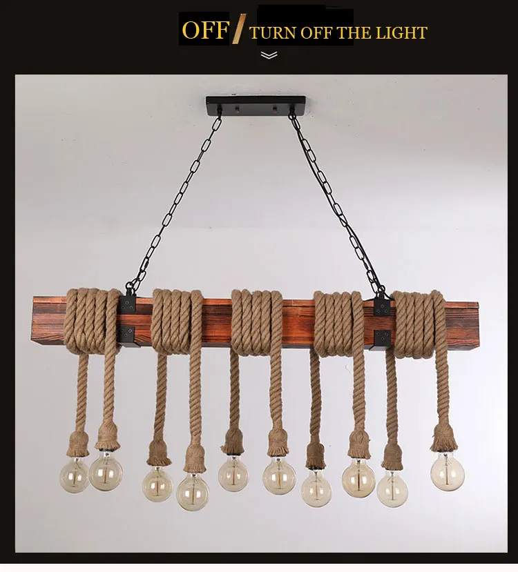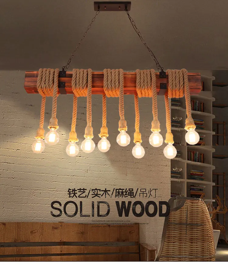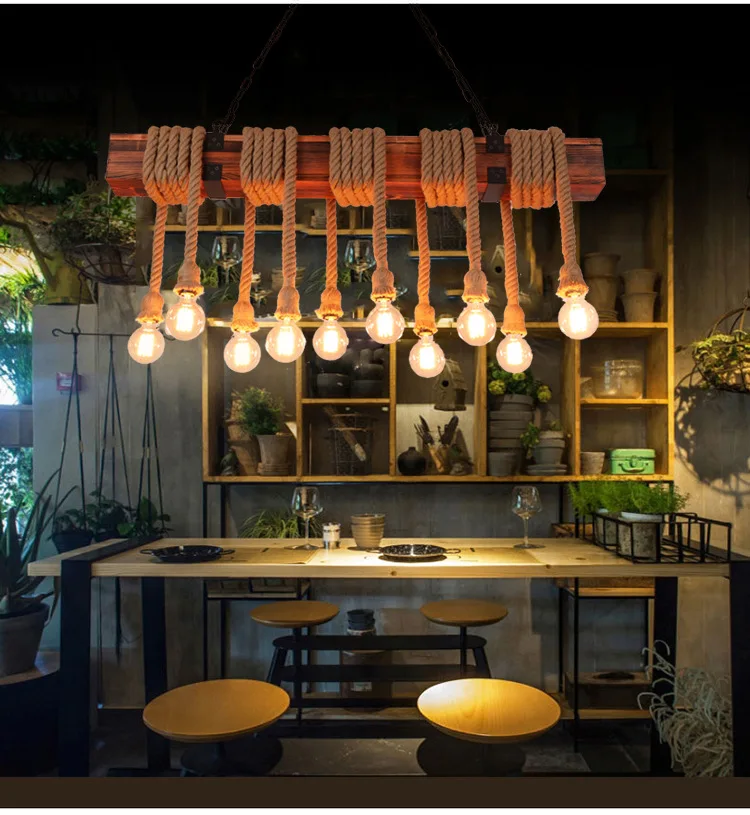 Деревянный подвесной светильник в стиле ретро, лампа из пеньковой веревки с 10 головками в стиле индастриал, лампа для кафе, бара, лофта, чайной, гостиной, столовая, дерево люстра
