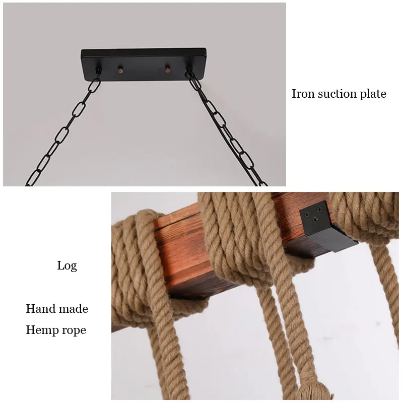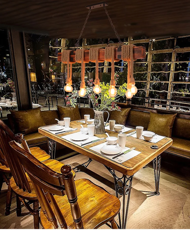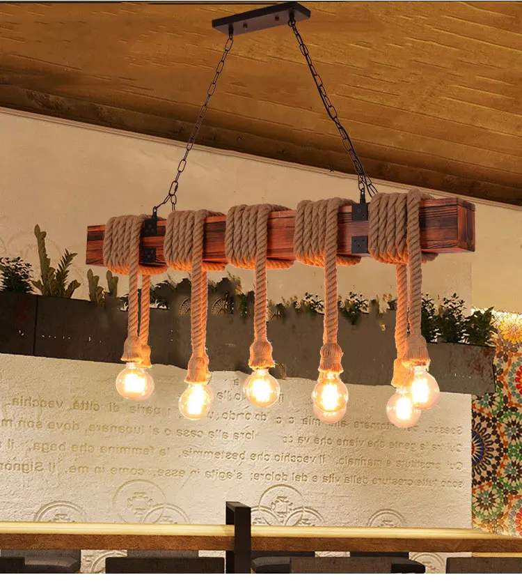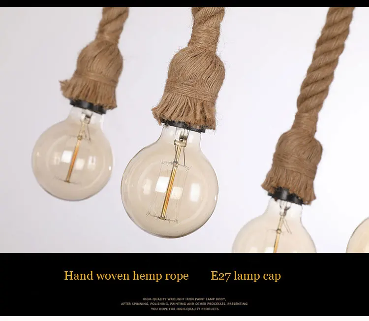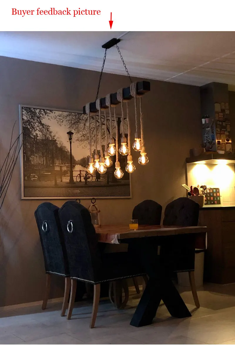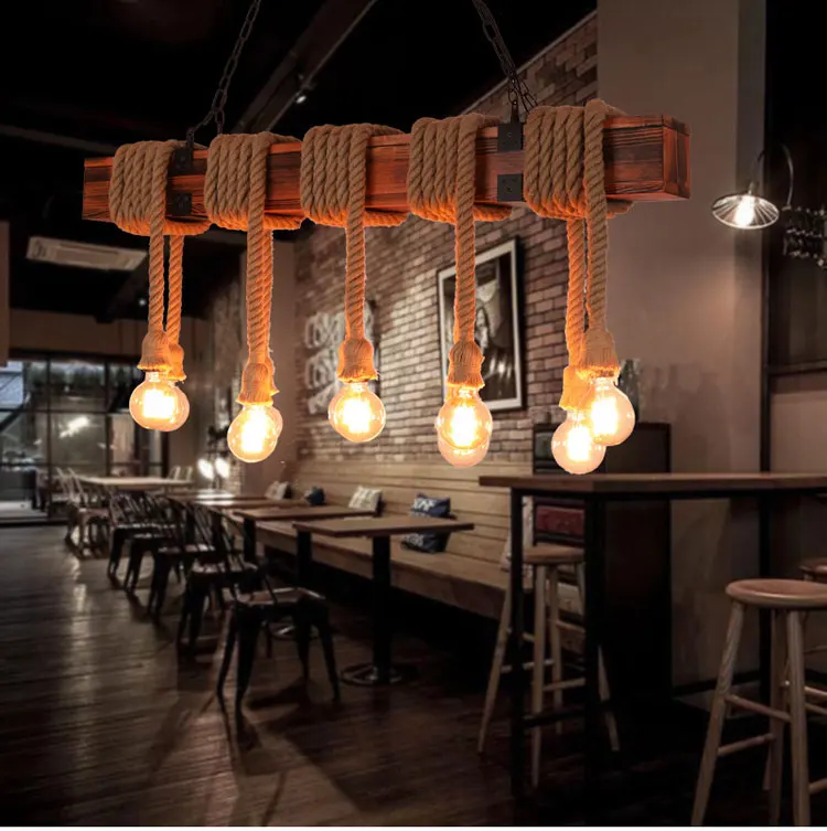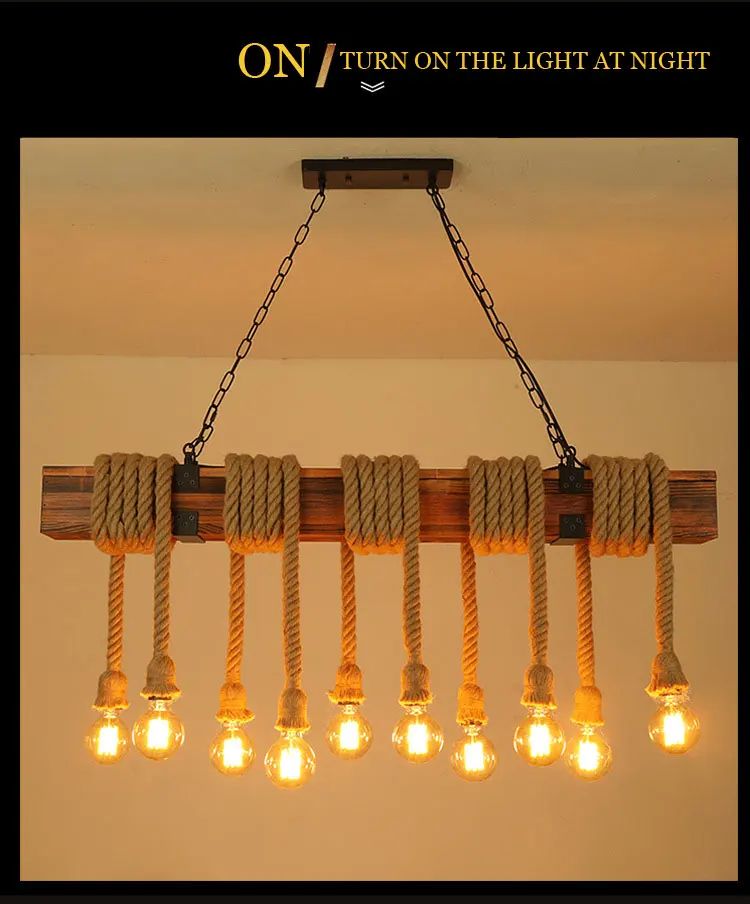 Деревянный подвесной светильник в стиле ретро, лампа из пеньковой веревки с 10 головками в стиле индастриал, лампа для кафе, бара, лофта, чайной, гостиной, столовая, дерево люстра