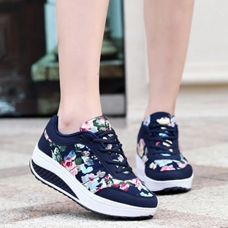 Кроссовки женские дышащие, на толстой подошве, с цветочным принтом