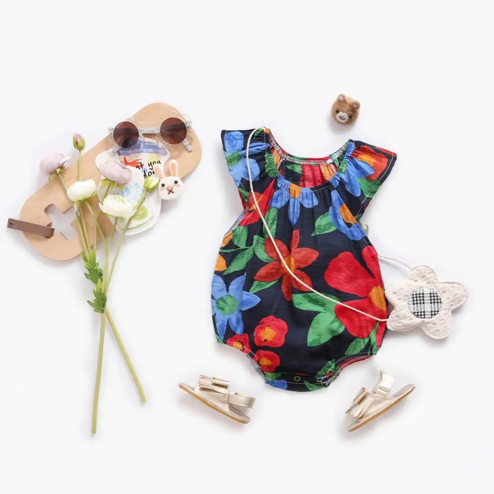 Комбинезон детский летний из хлопка, без рукавов, с цветочным принтом